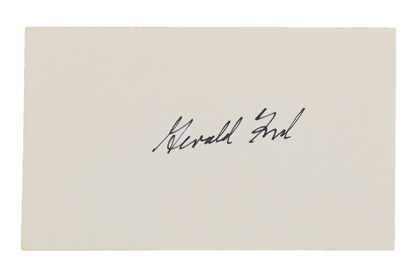 Cut measures 3" x 5" in size. Hand-signed by Gerald Ford (D. 2006).