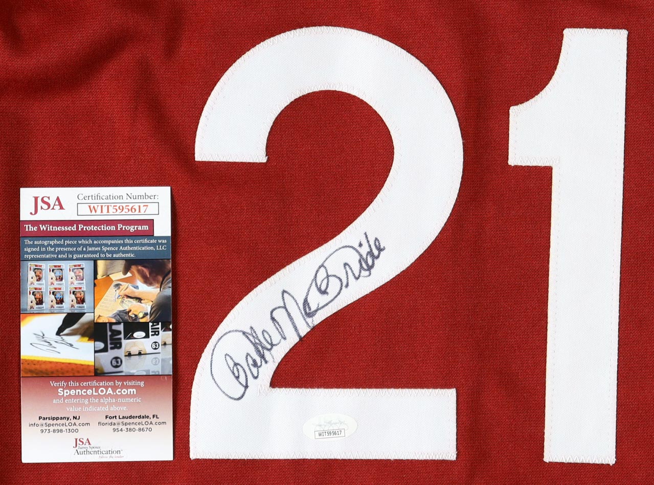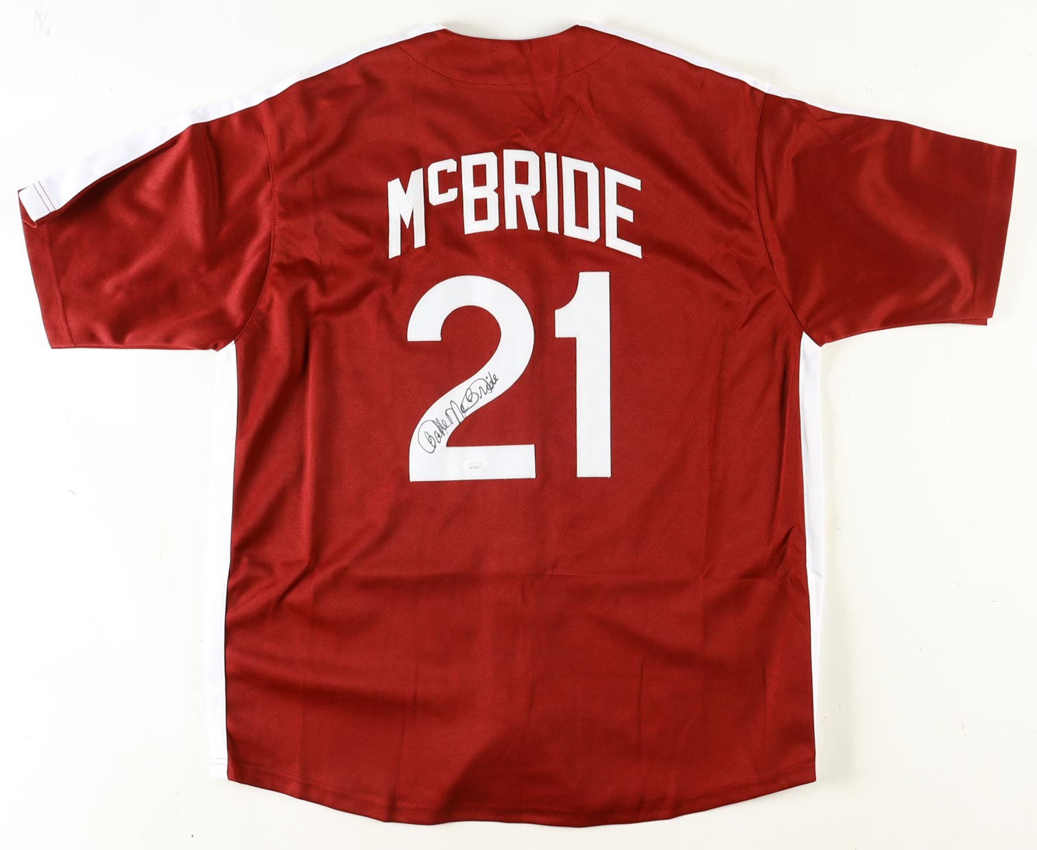 Custom jersey with everything sewn on, size XL. Hand-signed by Bake McBride.