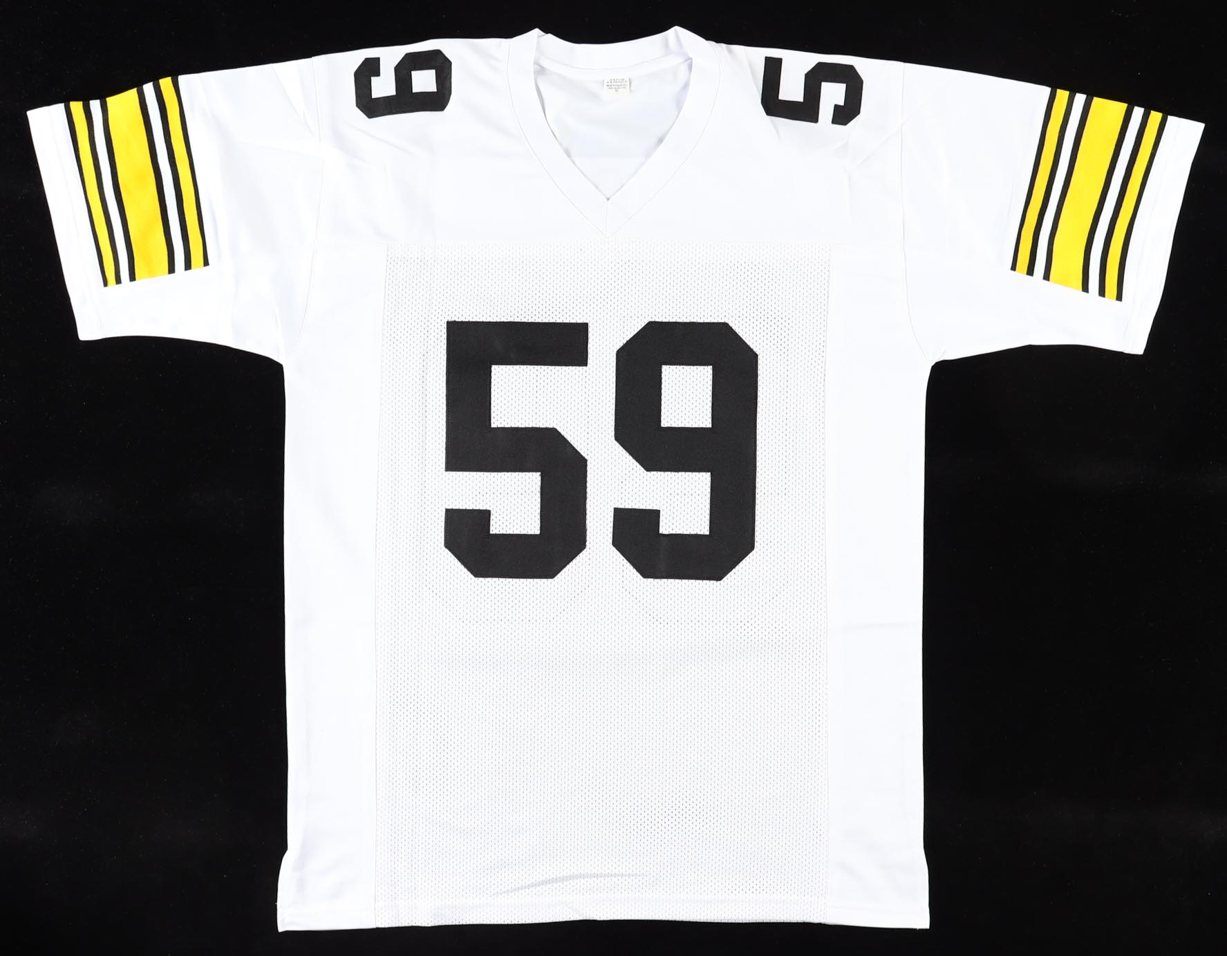 Custom football jersey. Everything sewn on, size XL. Hand-signed and inscribed by Jack Ham (HOF).