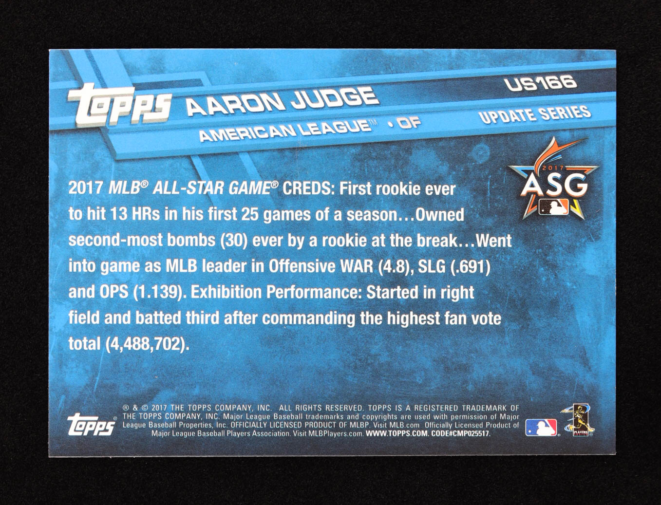 Aaron Judge 2017 Topps Update #US166A AS RC