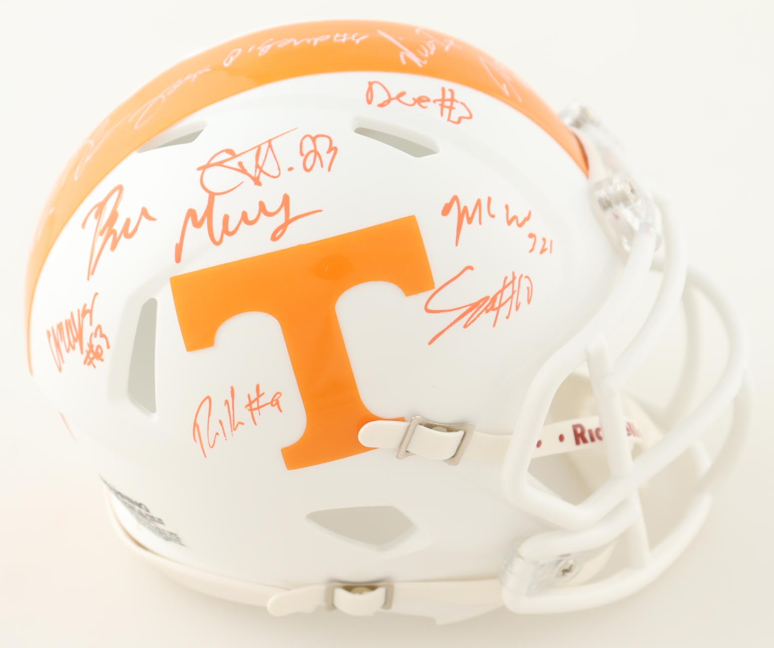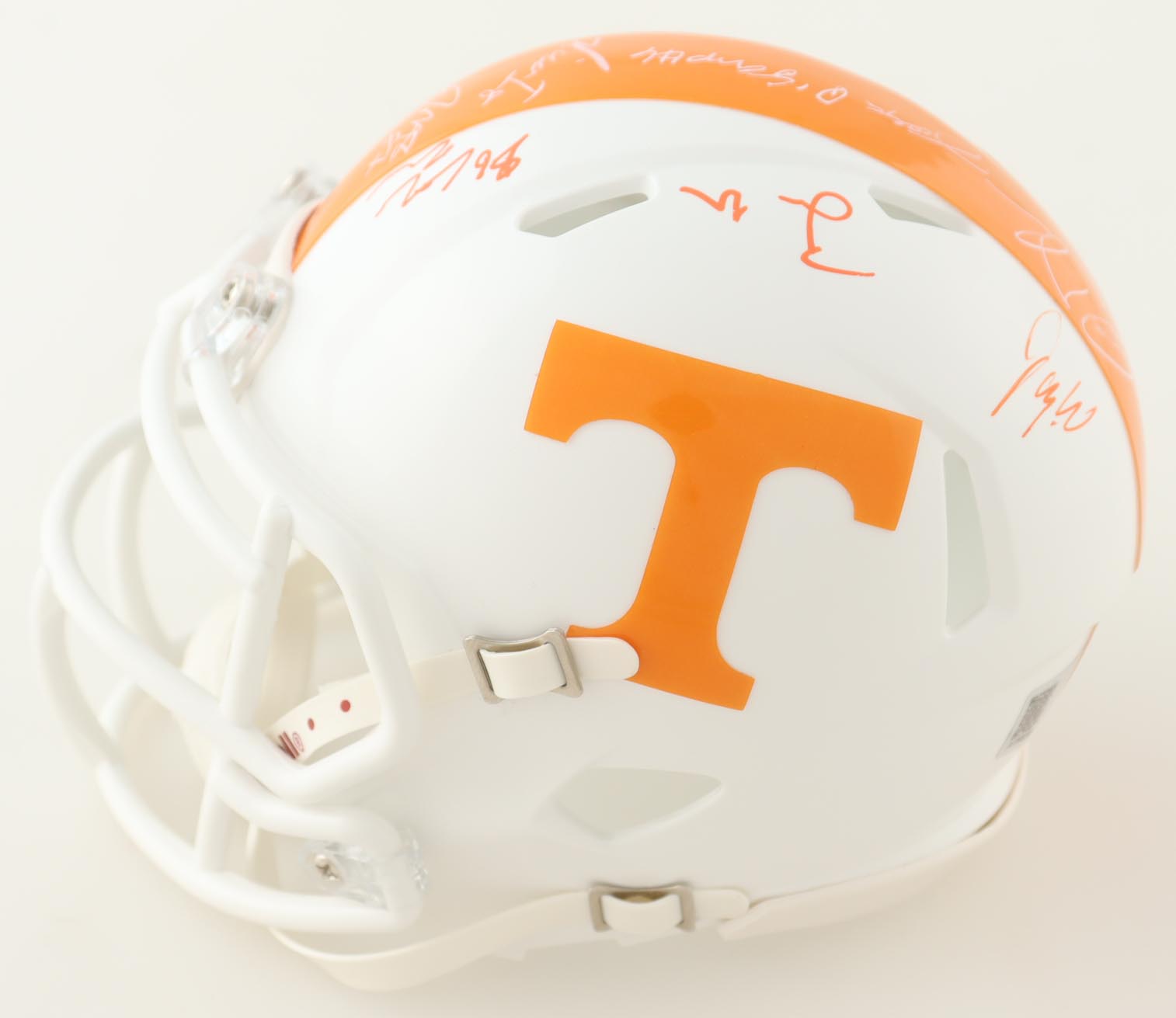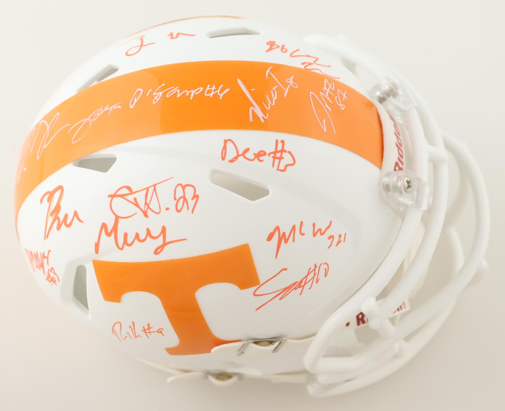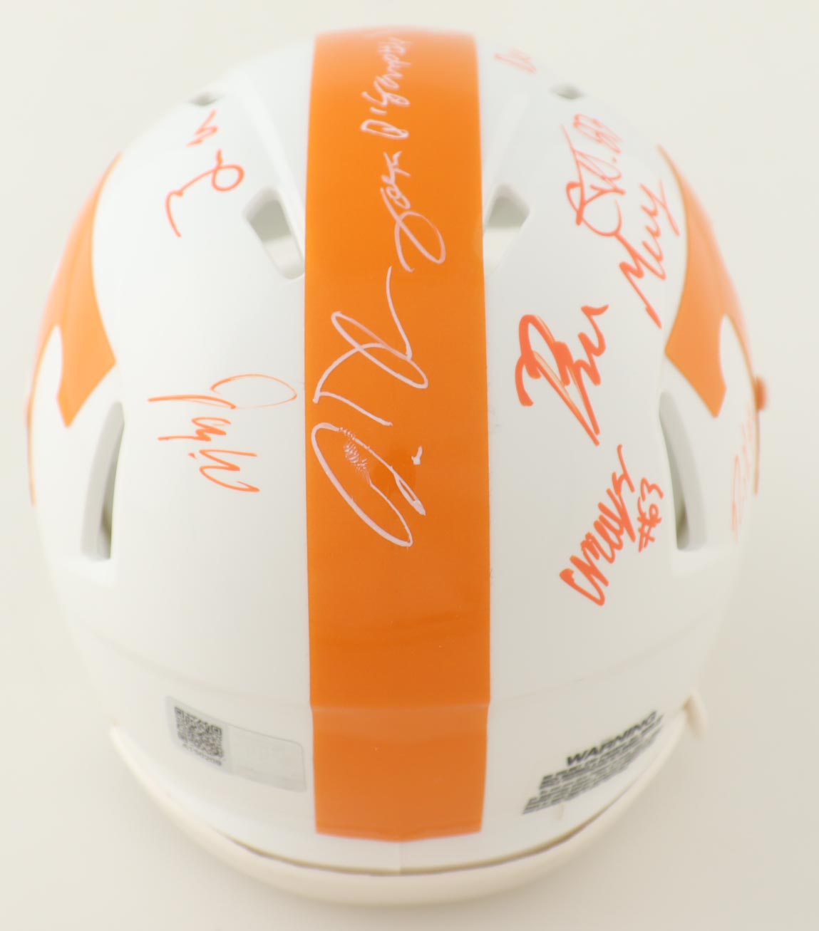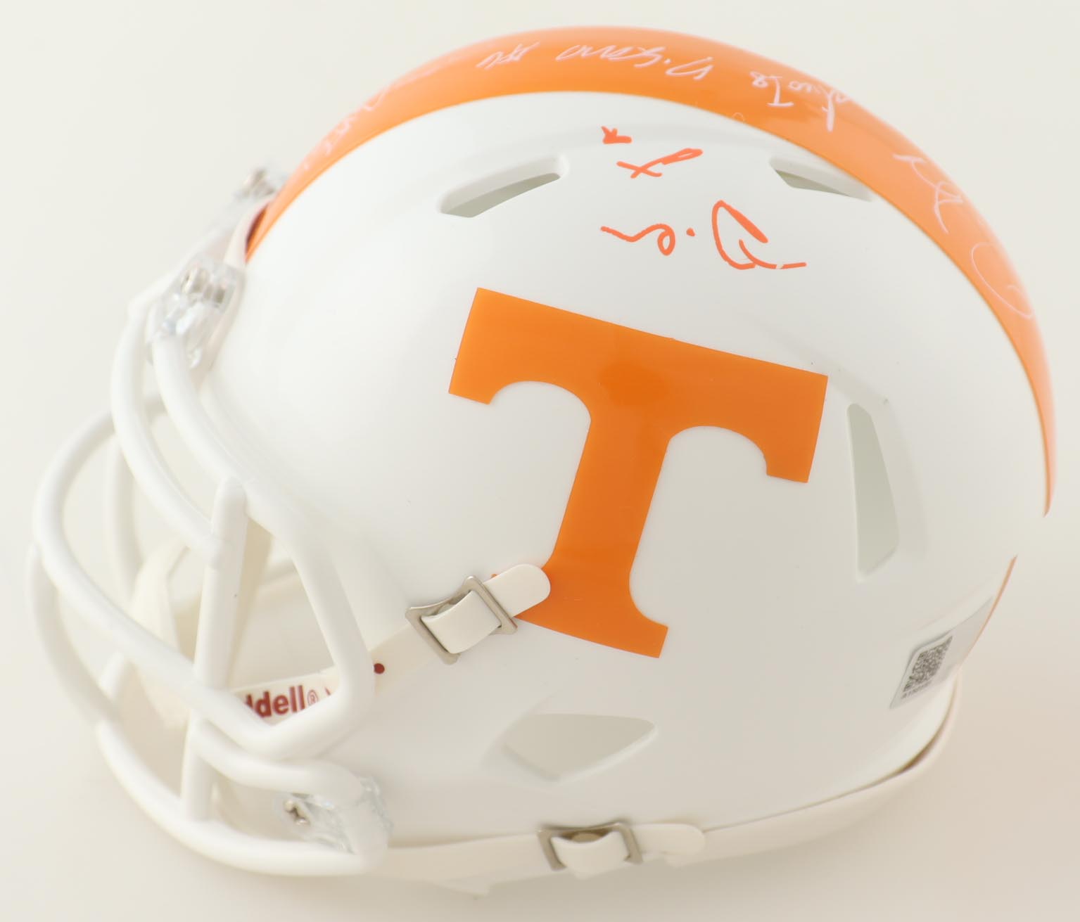 Riddell Tennessee Volunteers speed mini helmet. Helmet is hand-signed by (15) members of the 2023 Tennessee Volunteers Offense with some of the signers including Wesley Walker, Omari Thomas, Doneiko Slaughter, Elijah Herring, Aaron Beasley, Ramel Keyton, Dee Williams, Squirrel White, Bru McCoy, Cooper Mays, Cameron Seldon, with many others unknown. Will receive a limited edition #/50.