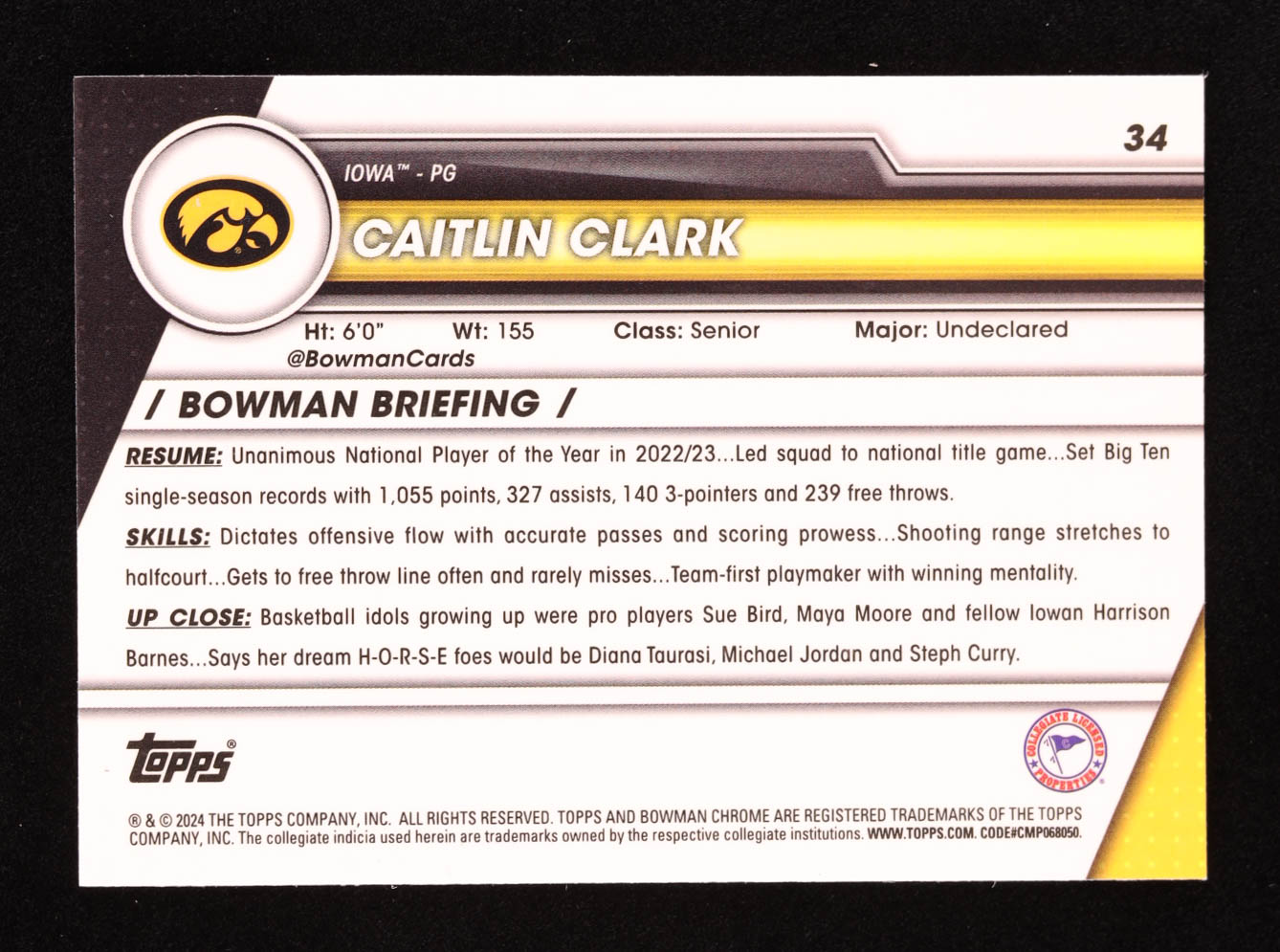 Caitlin Clark 2023-24 Bowman Chrome University #34 RC