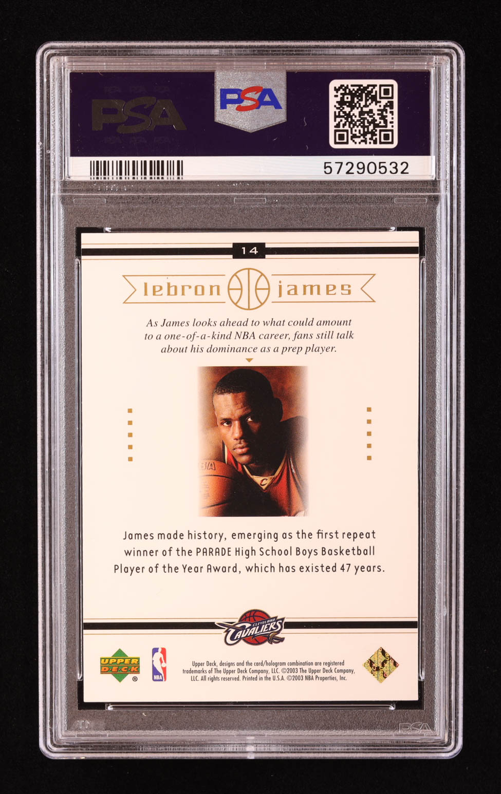 LeBron James 2003 Upper Deck LeBron James Box Set #14 RC / On Parade (PSA 9)