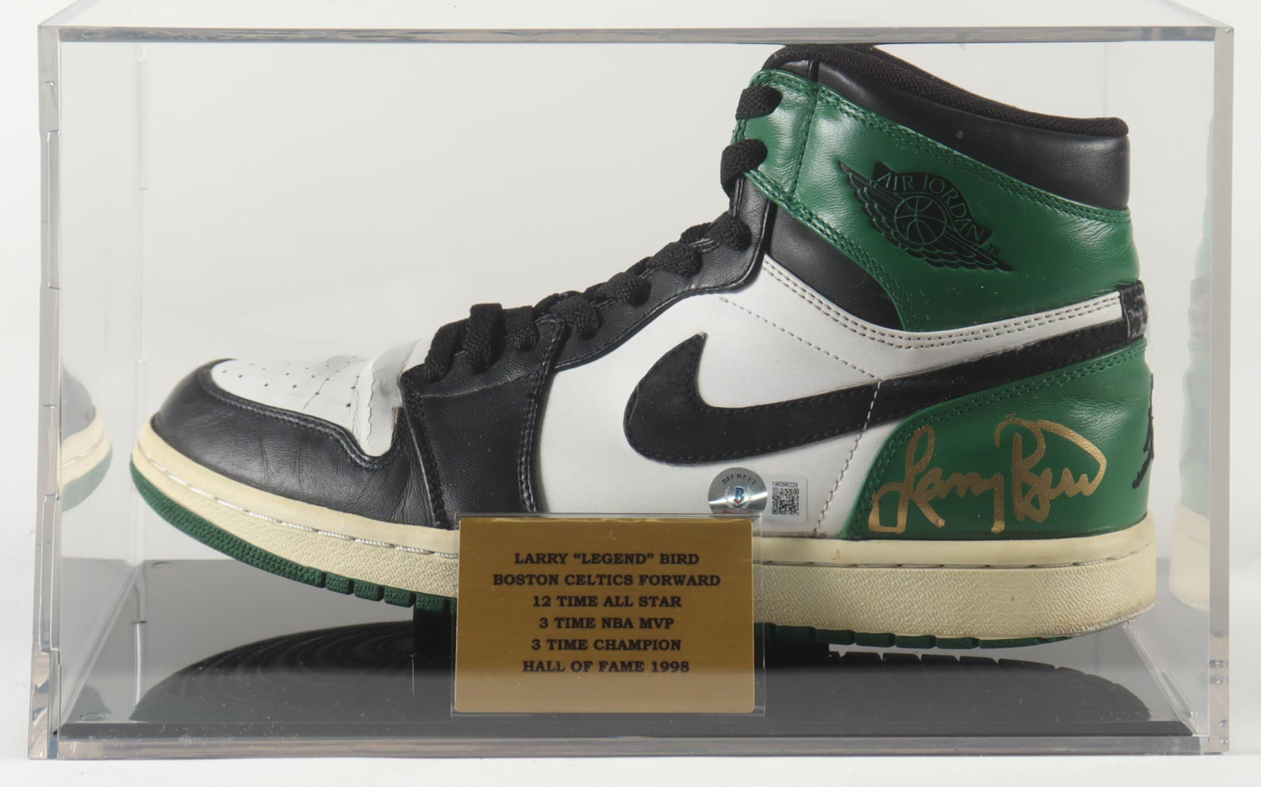 Larry Bird Signed Nike Air Jordan Celtics Basketball Shoe In Display Case (Beckett)