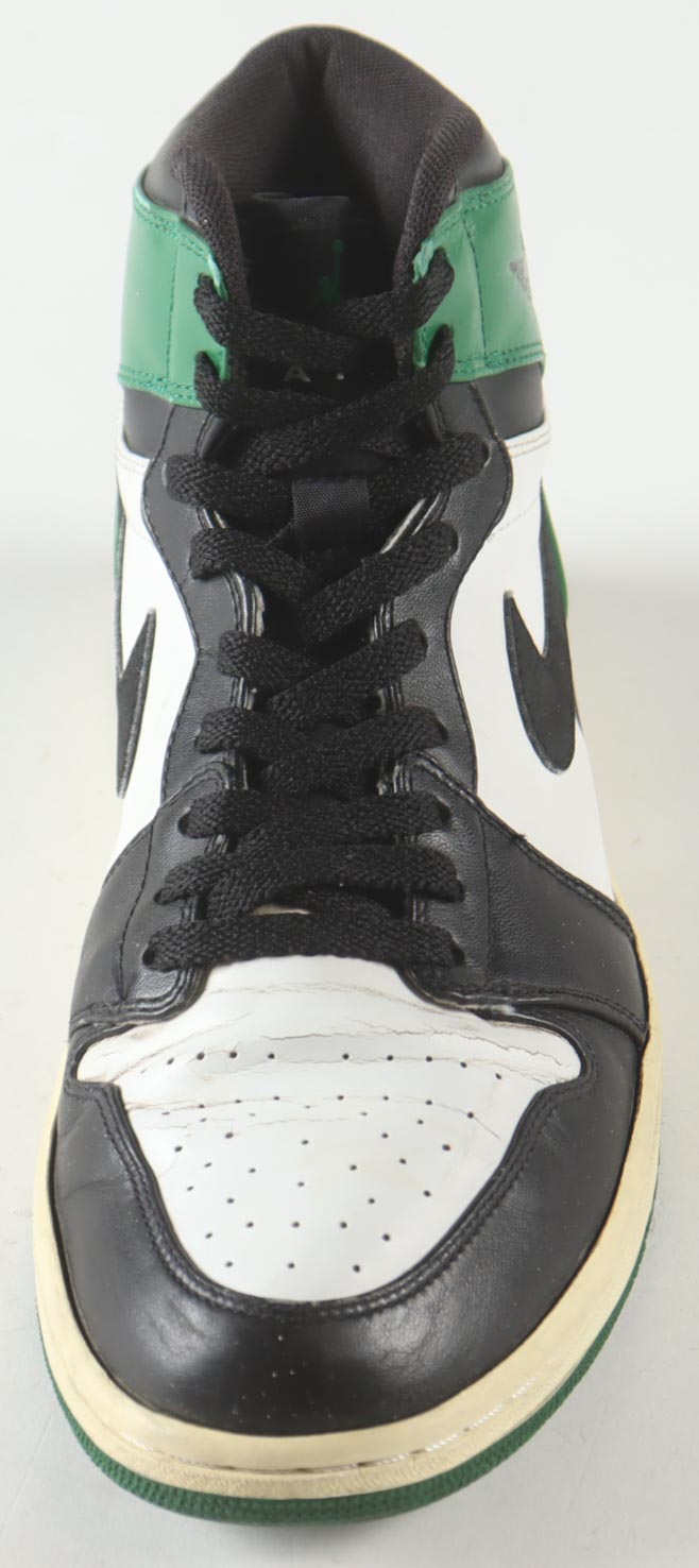 Nike Air Jordan 1 basketball shoe. Hand-signed by Larry Bird (Boston Celtics, HOF). Display case comes as shown. Please refer to photos for the condition of the shoe.