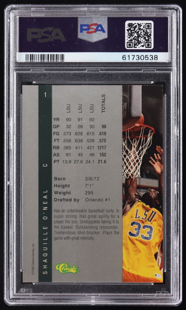 Shaquille O'Neal 1992 Classic Four Sport #1 RC (PSA 9)
