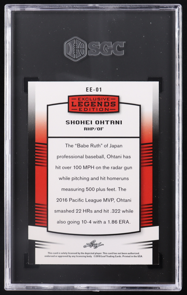 Shohei Ohtani 2018 Leaf Ohtani Legends Exclusive Edition Red #EE01 RC #34/200 (SGC 9)