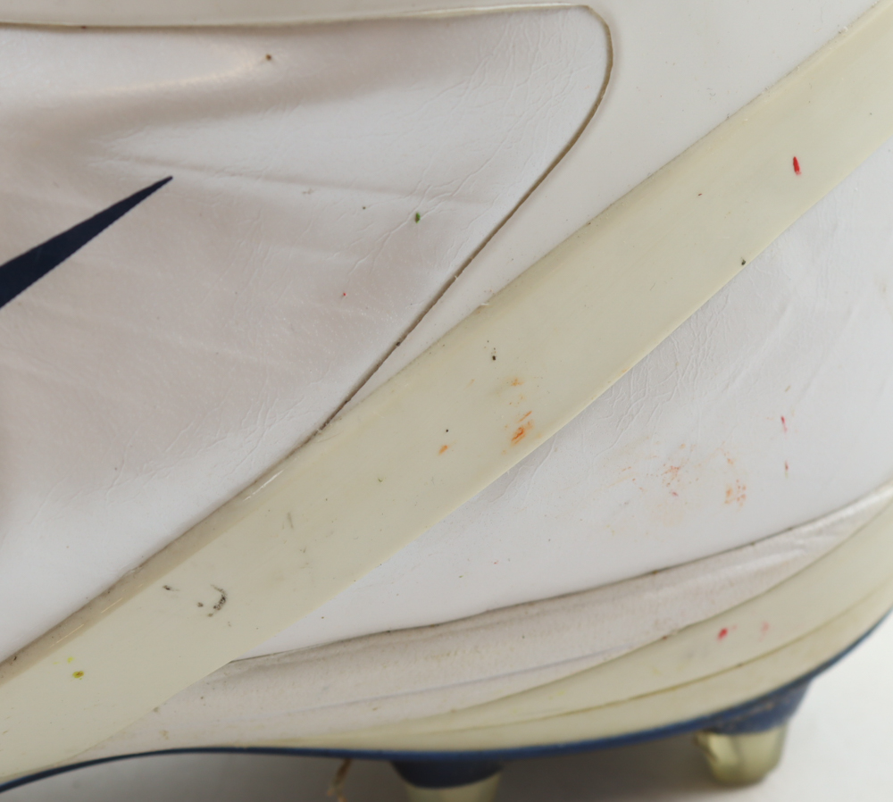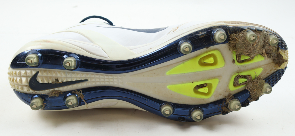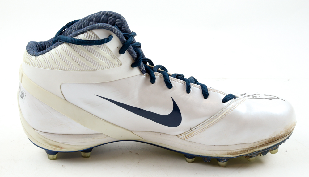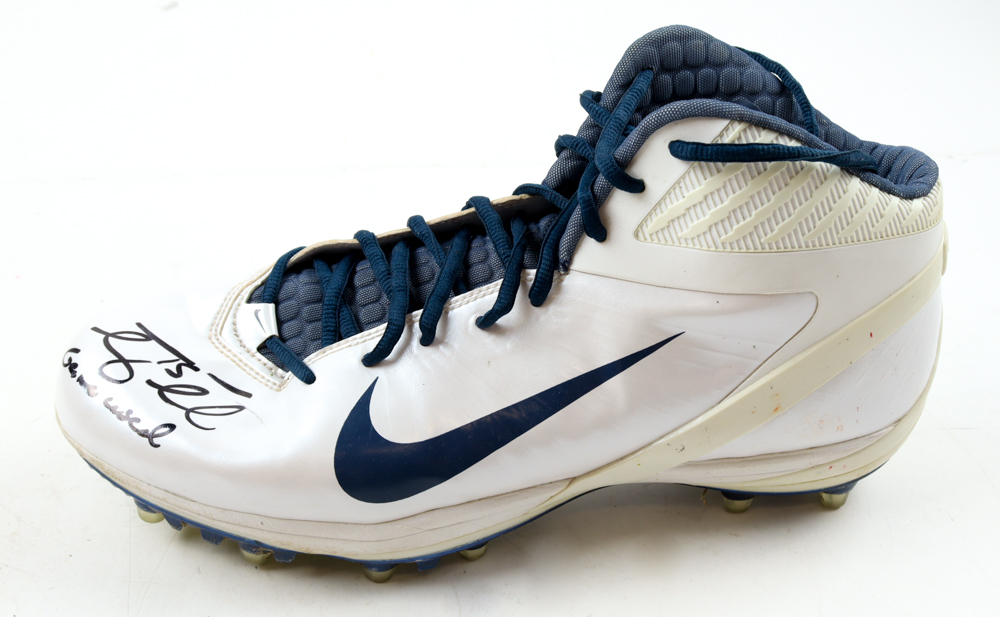 Nike football cleat, size 13. Directly from Tim Tebow's collection, the shoe has been worn, used, hand-signed and inscribed by Tim Tebow (Denver Broncos). It is unknown if the cleats were worn in practice or during a game. Please see photos for further details regarding the condition of the cleat.