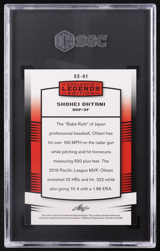 Shohei Ohtani 2018 Leaf Ohtani Legends Exclusive Edition Red #EE01 RC #133/200 (SGC 9)