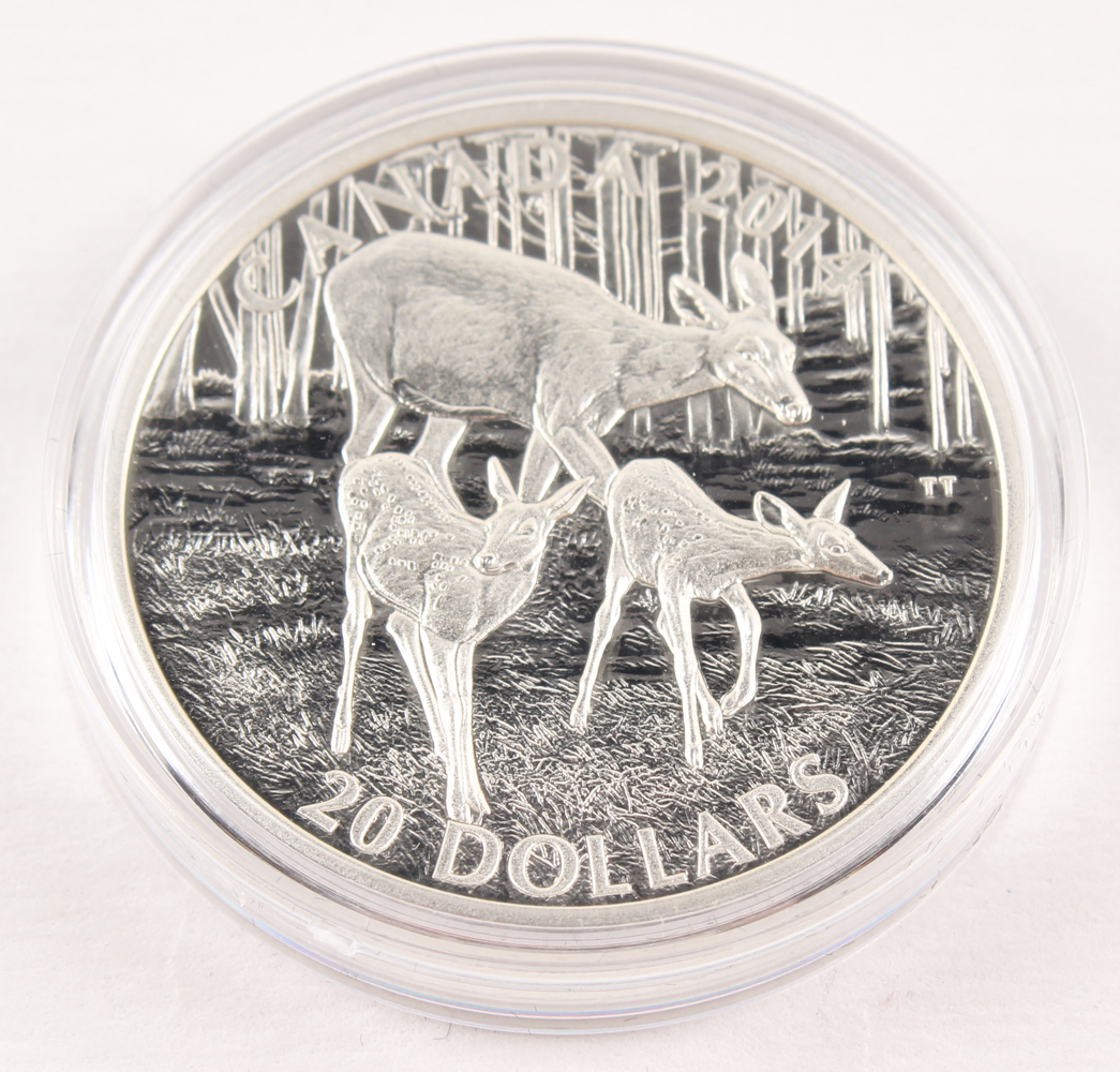 2014 Canadian 1 oz Fine Silver $20 White Tailed Deer Coin