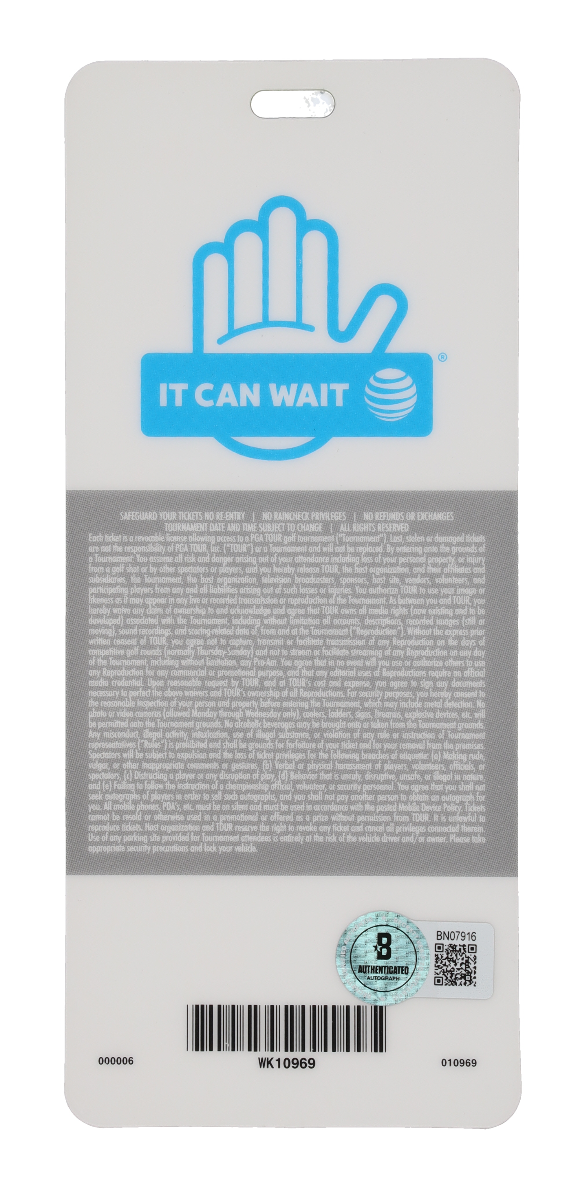 Pass measures 3" x 7" in size and has been hand-signed by Jordan Spieth.