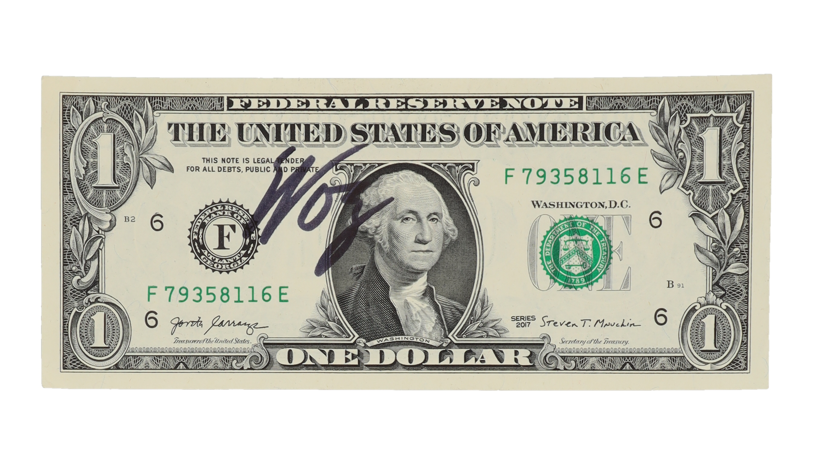 One dollar Federal Reserve Note has been hand-signed by Steve Wozniak.