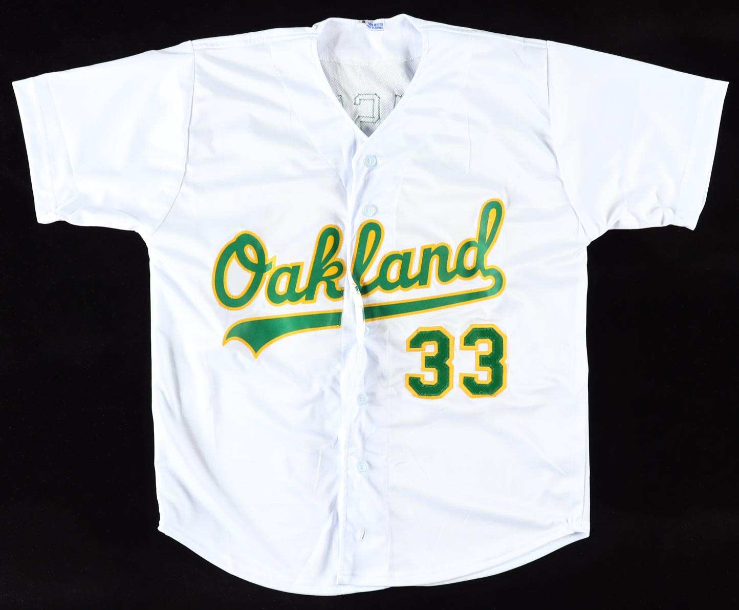 Custom jersey with everything sewn on, size XL. Hand-signed by Jose Canseco.