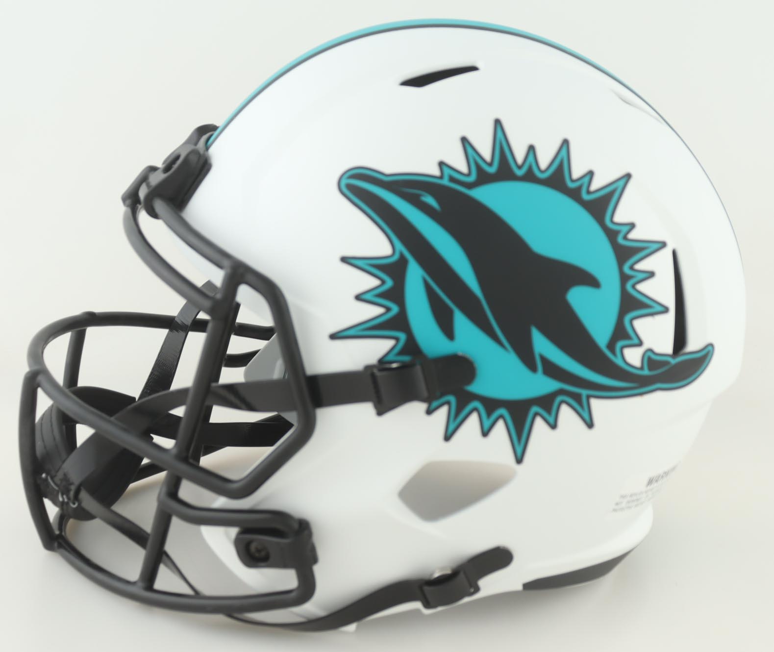 Riddell Miami Dolphins full-size replica Lunar Eclipse Alternate speed helmet. Hand-signed and inscribed by Ricky Williams.