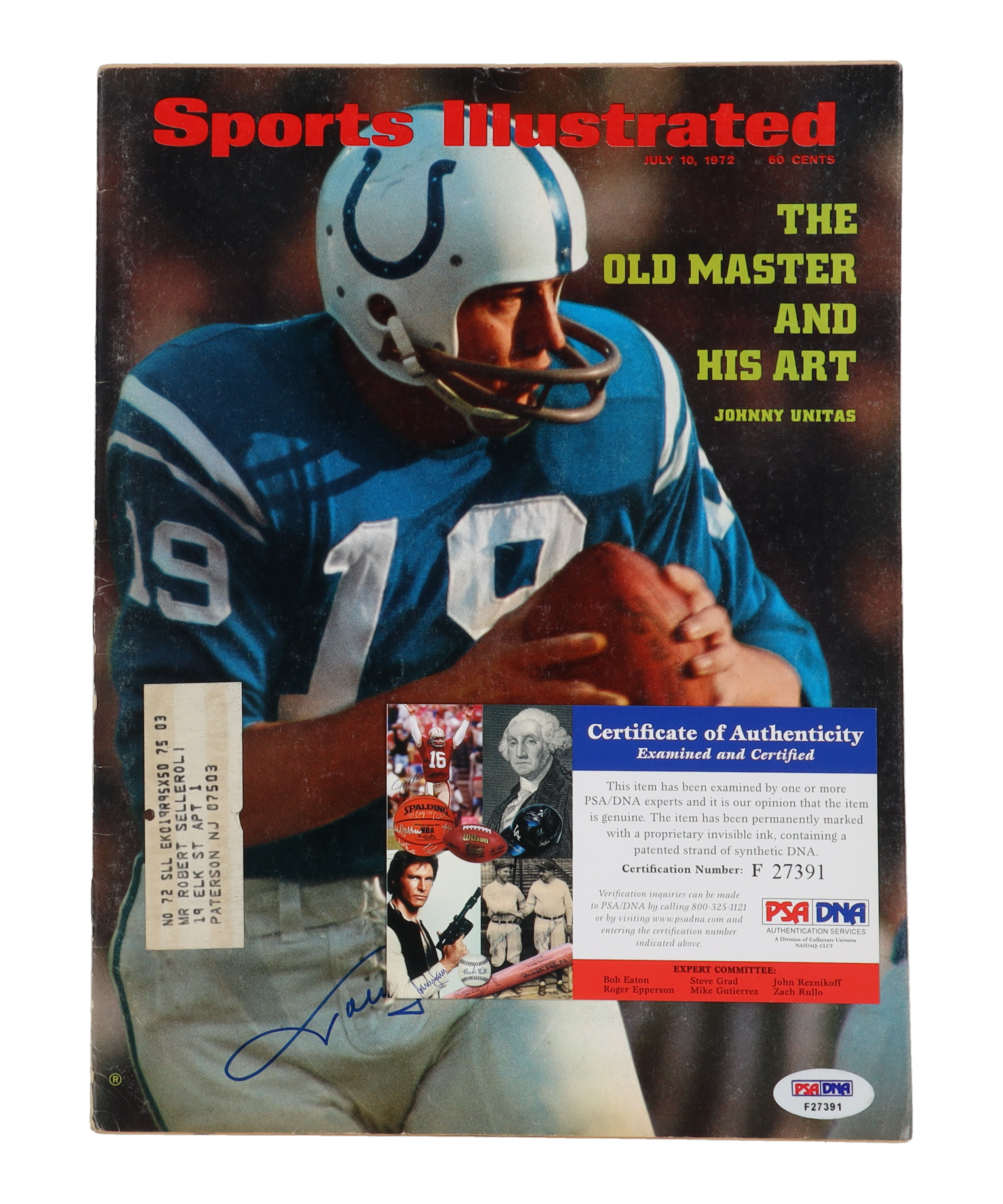 July 10th, 1972 issue of Sports Illustrated Magazine. Hand-signed on the cover by Johnny Unitas (Cleveland Indians). Please note, creasing on the spine and pages are naturally toned.