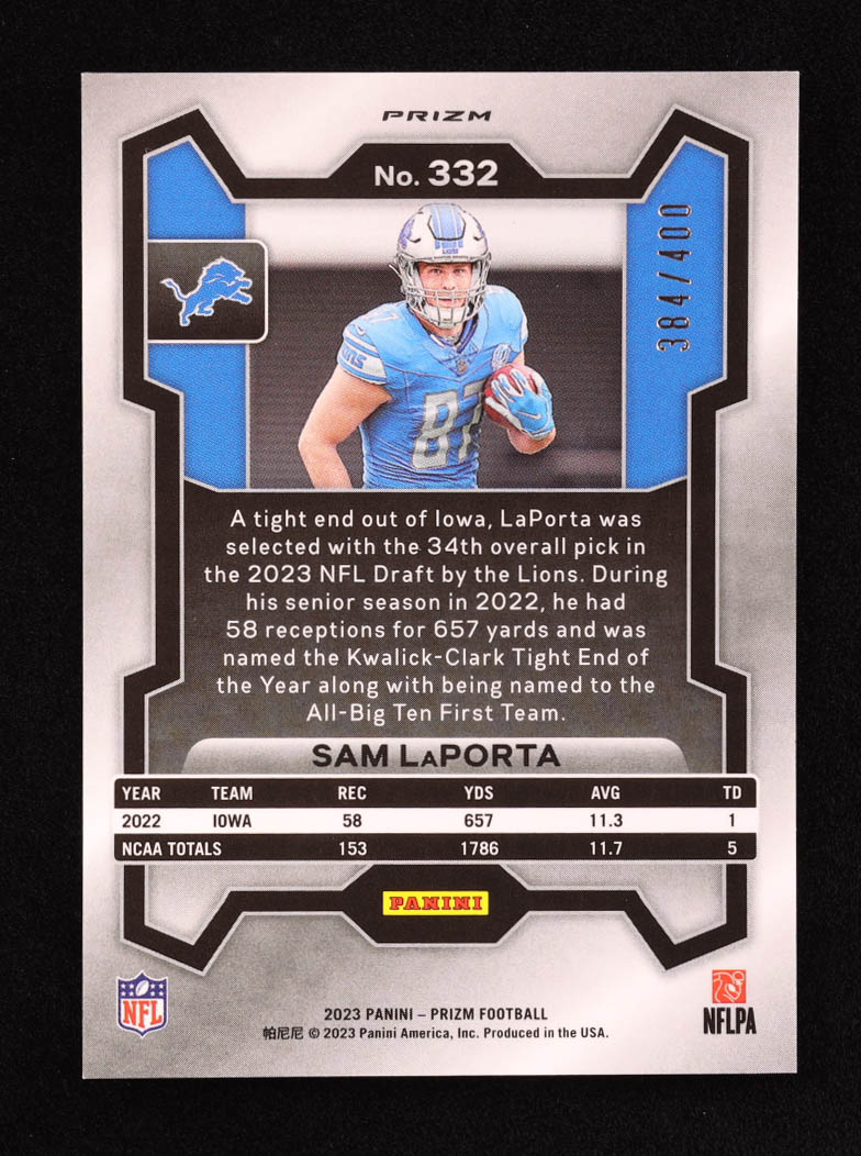 Sam LaPorta 2023 Panini Prizm Prizms Pandora #332 RC #384/400