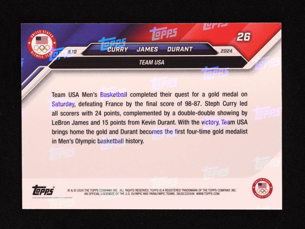 Stephen Curry / LeBron James / Kevin Durant 2024 Topps Now Olympic Games Blue Logo Variant #26