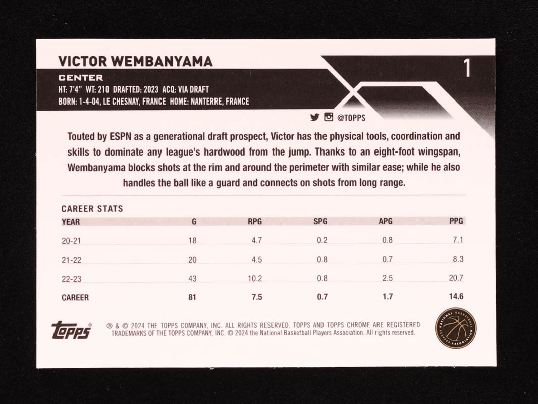Victor Wembanyama 2023-24 Topps Chrome #1 RC