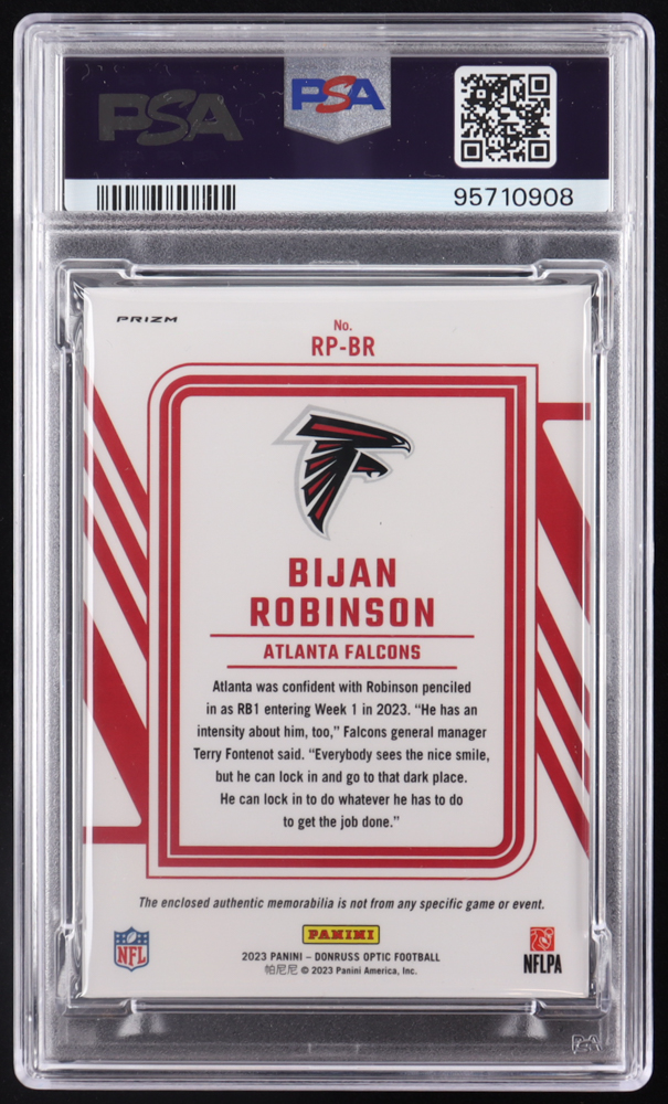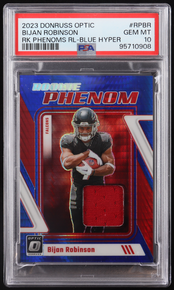 Bijan Robinson 2023 Donruss Optic Rookie Phenoms Jerseys Blue Hyper #3 RC (PSA 10)