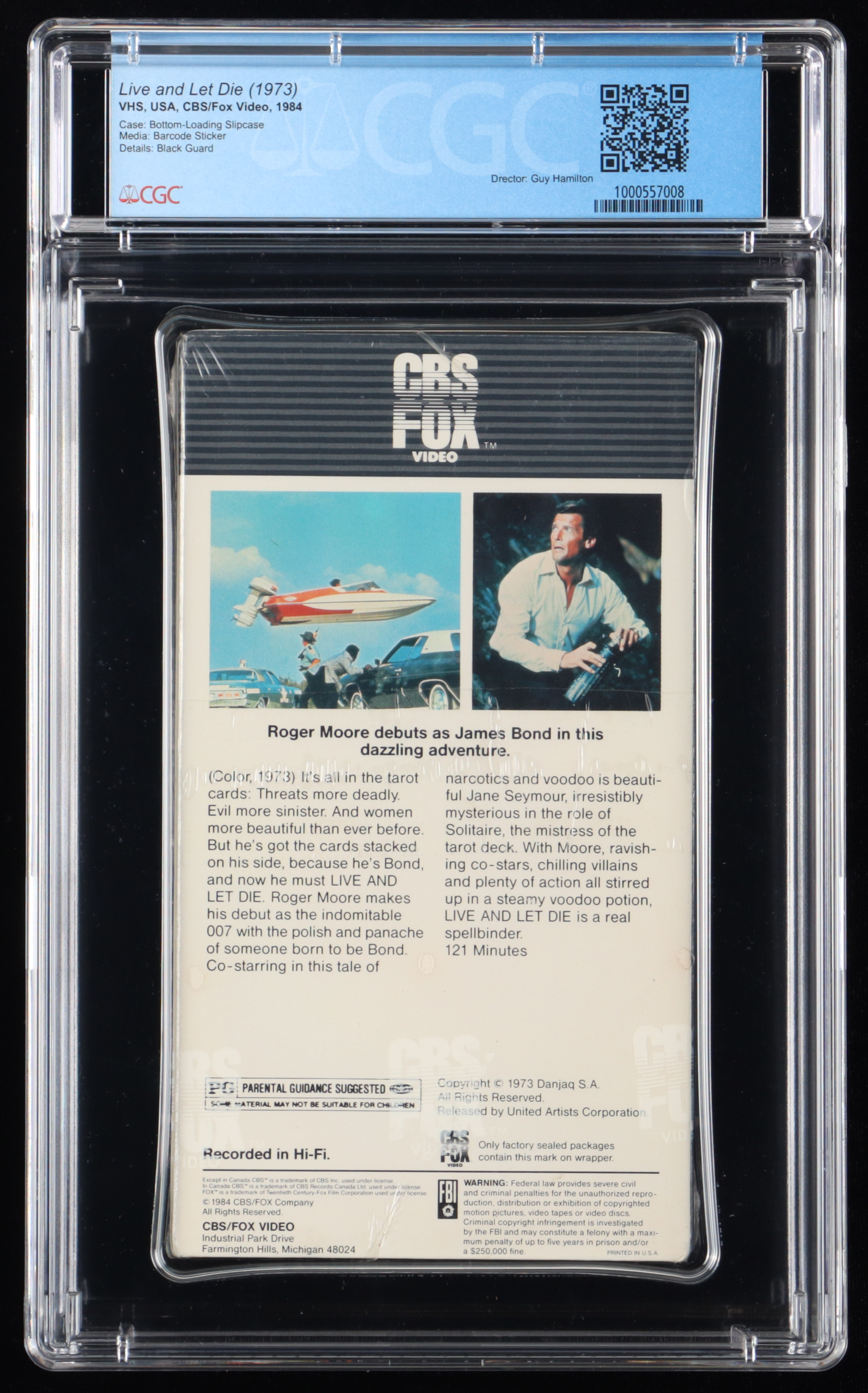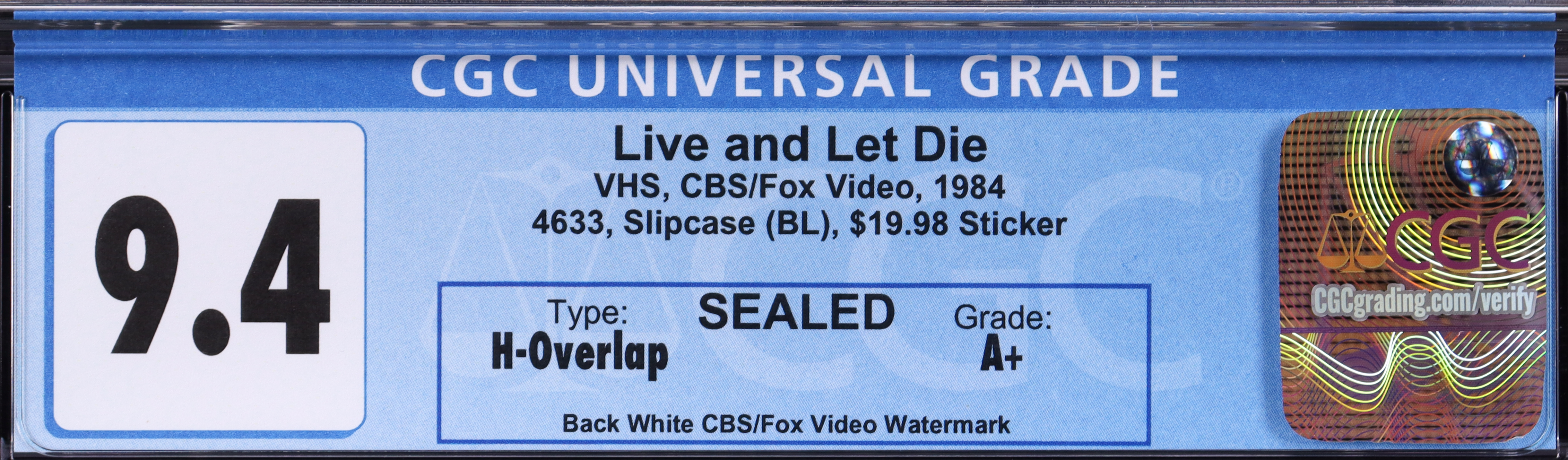 1984 James Bond "Live And Let Die" CBS/FOX VHS Video Cassette Tape (CGC 9.4)
