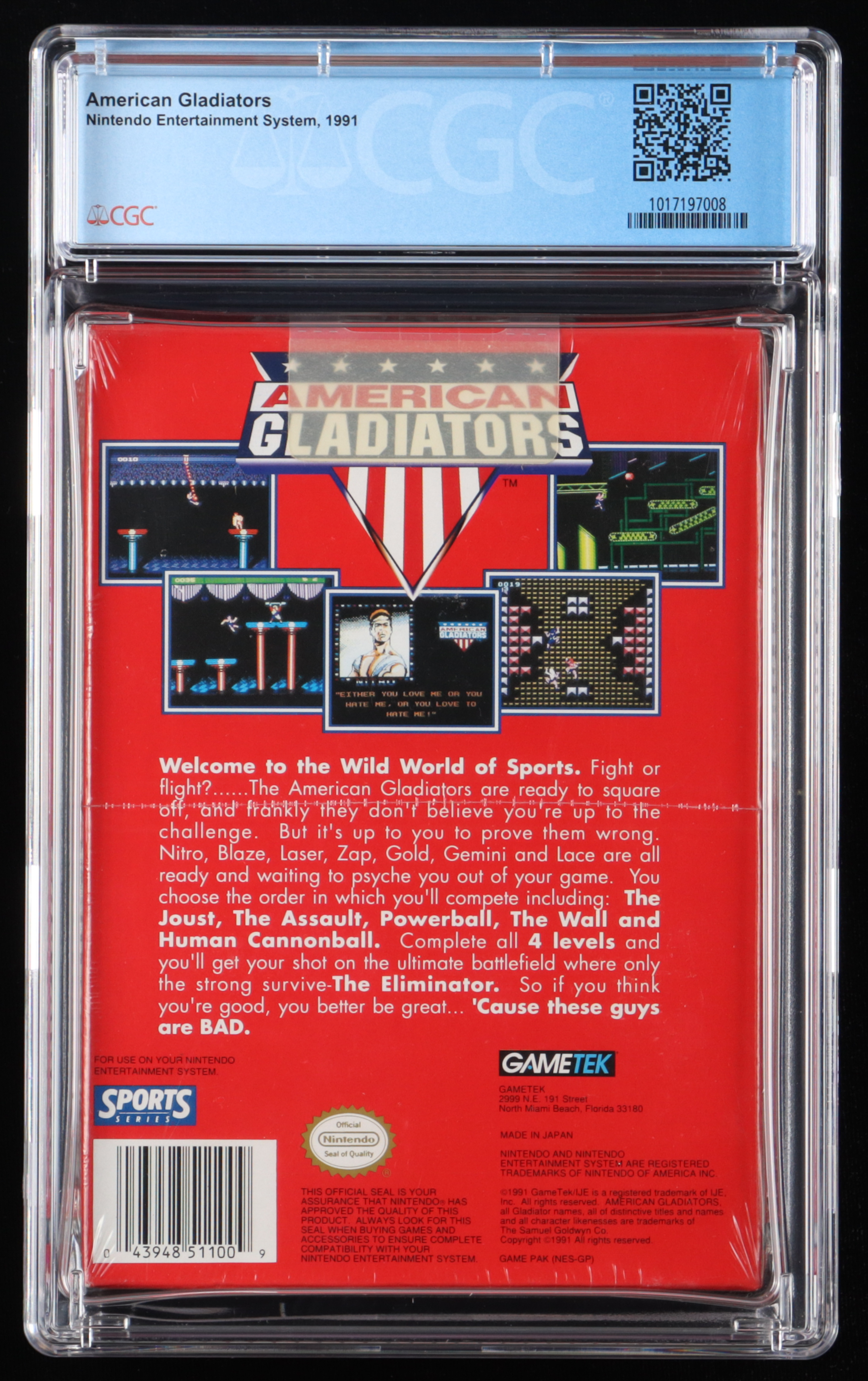 1991 "American Gladiators" Nintendo Entertainment Systems (NES) Video Game Cartridge (CGC 9.4)