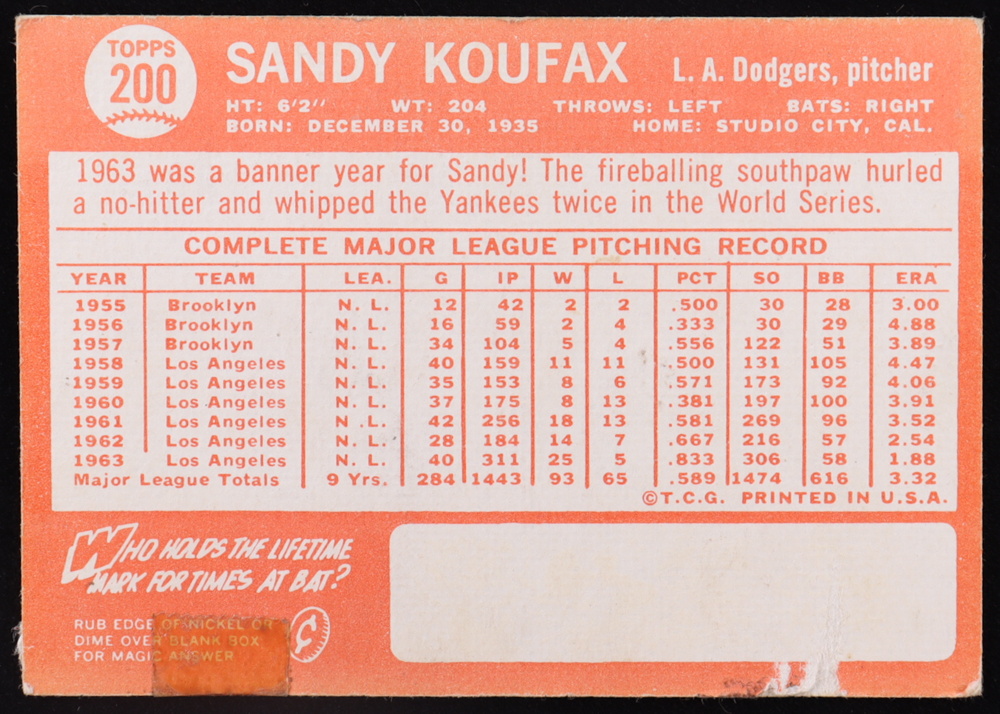 Sandy Koufax 1964 Topps #200