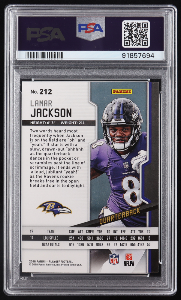 Lamar Jackson 2018 Playoff #212 RC (PSA 8)