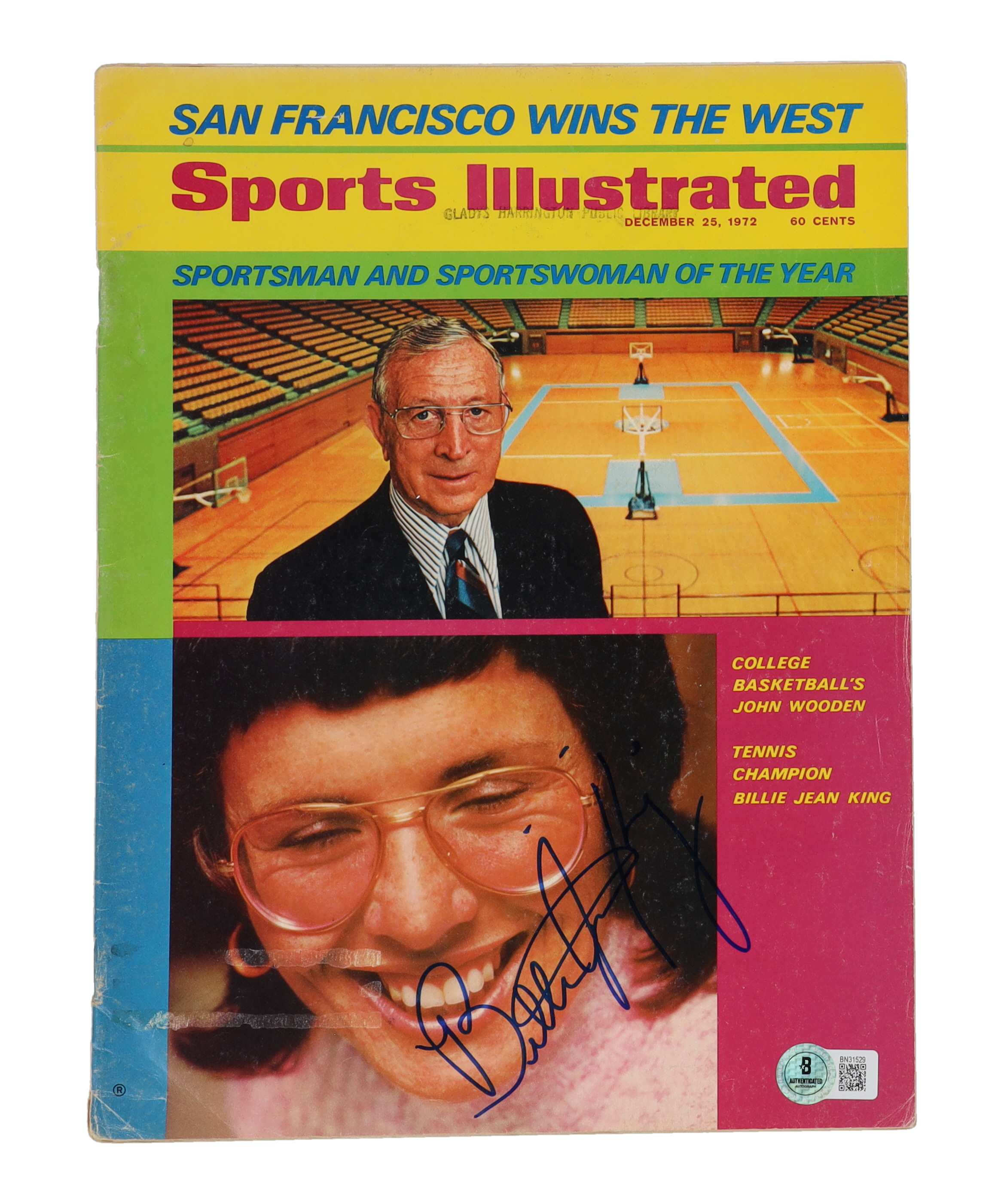 December 25th, 1972 issue of Sports Illustrated magazine. Hand-signed on the cover by Billie Jean King (HOF). Please note, creasing on the corners of the magazine.