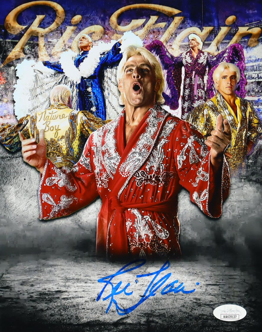 Photo measures approximately 8" x 10" in size. Hand-signed by Ric Flair (HOF).