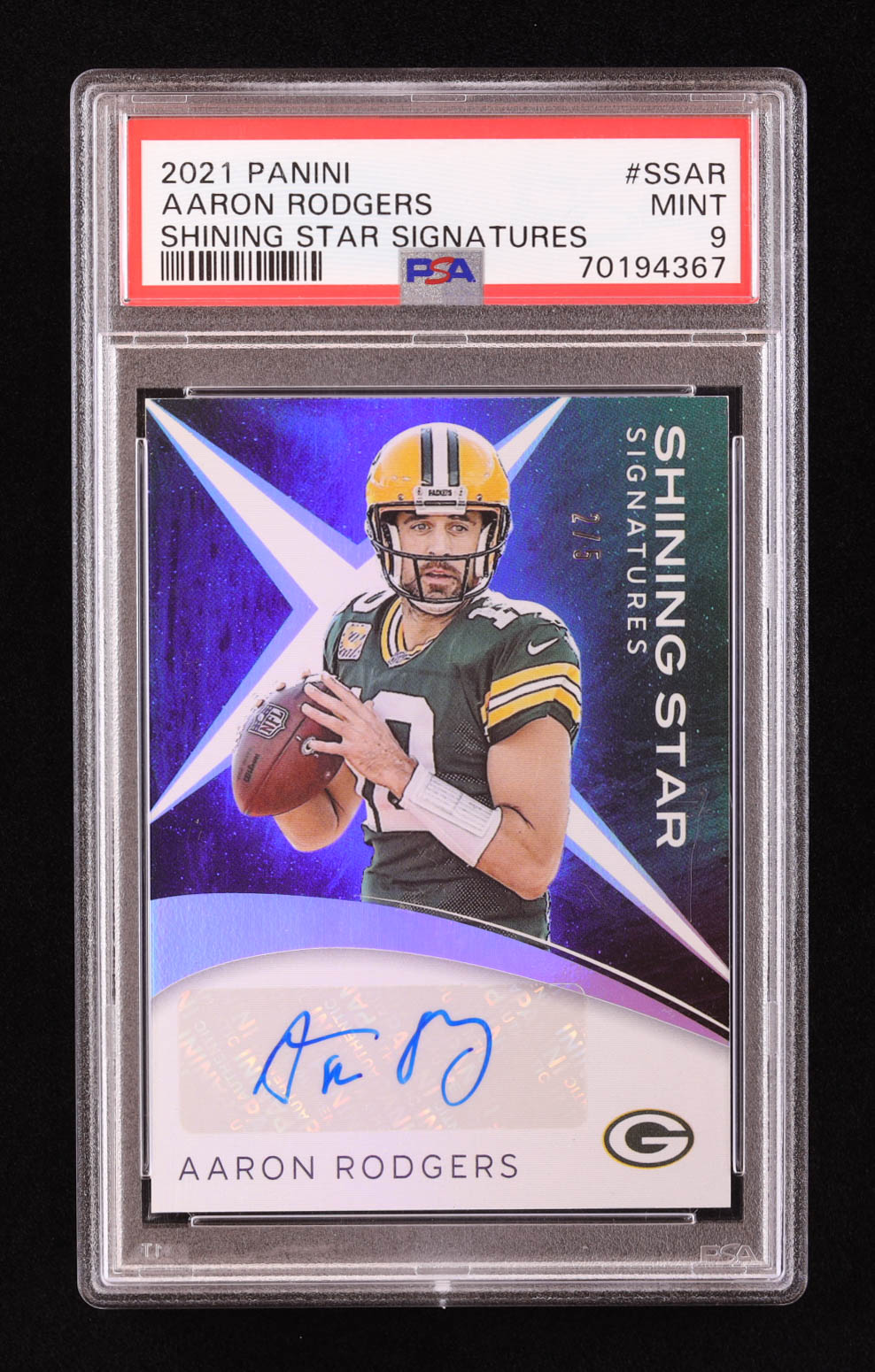 Aaron Rodgers 2021 Panini Shining Stars Signatures #SSAR #2/5 (PSA 9)