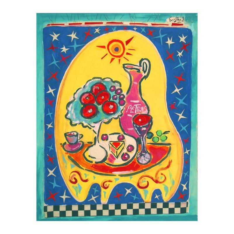 "Petrus Still Life" is an original Mixed Media on Board by Wayne Ensrud. The piece is hand signed by the artist and comes with a Certificate of Authenticity. Measures approximately 24" x 20".
