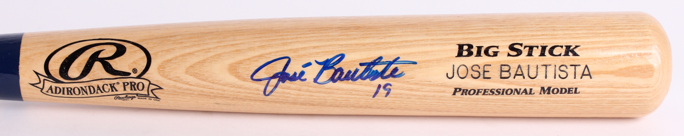 Rawlings Big Stick Pro Player Model baseball bat has been hand-signed in blue felt-tip pen by Jose Bautista (Blue Jays).
