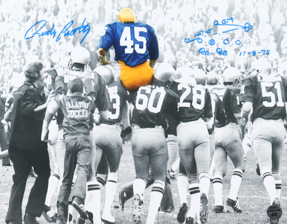 The autograph includes an official Rudy Ruettiger hologram for authenticity purposes.