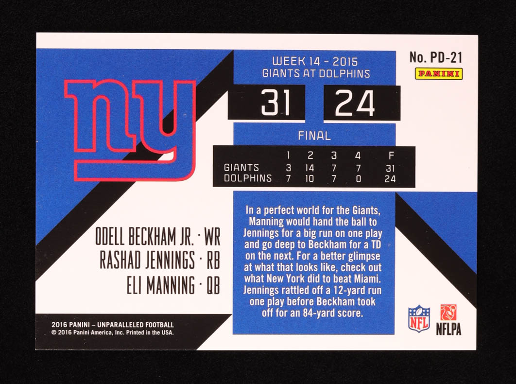 Eli Manning / Odell Beckham Jr. / Rashad Jennings 2016 Panini Unparalleled Pivotal Drive #PD21