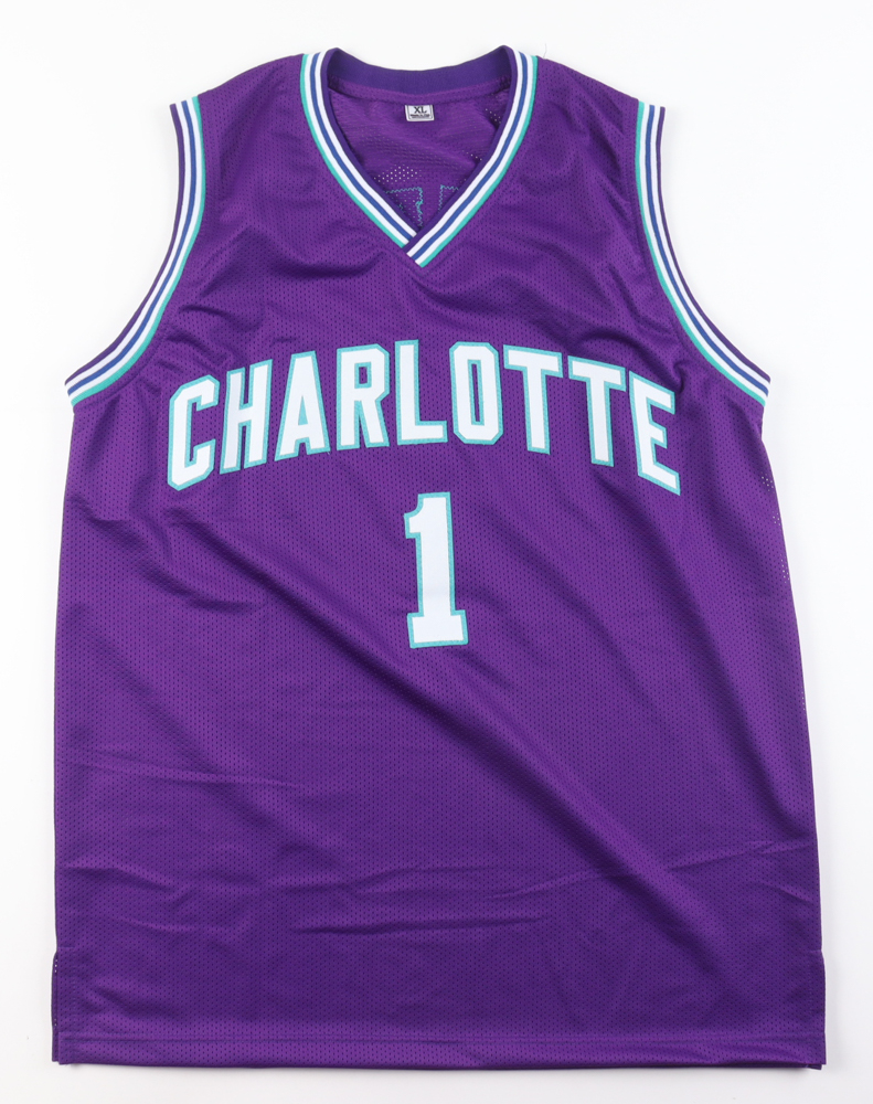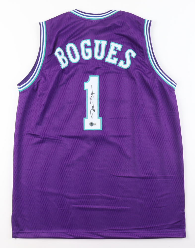 Custom jersey. Everything is sewn on, size XL. Hand-signed by Muggsy Bogues.