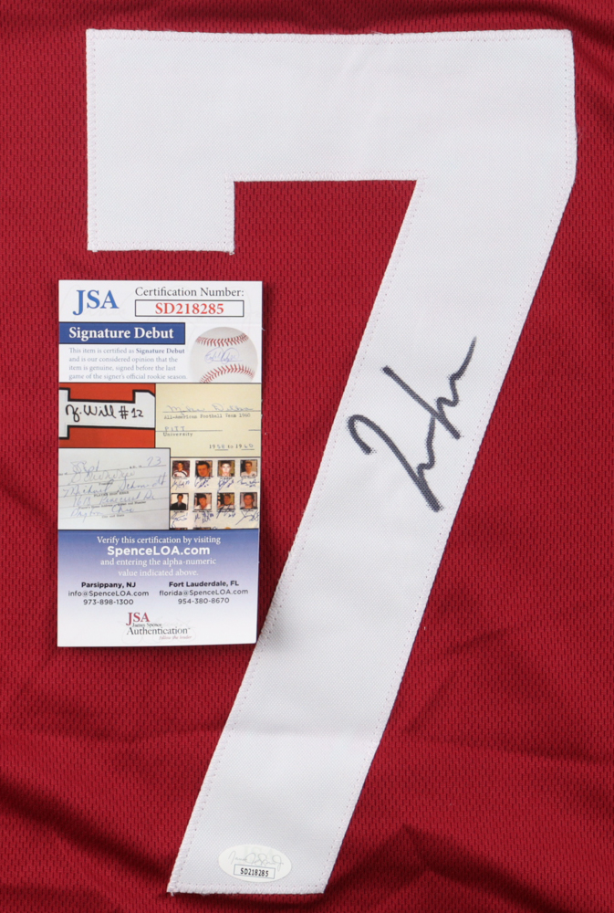 The autograph(s) includes an official James Spence Authentication (JSA) "Signature Debut" hologram and COA. "Signature Debut" is the autographed memorabilia equivalent to a rookie card. The JSA definition of a "Signature Debut" is as follows: "Any item that is autographed and received by JSA prior to the last game of the signer's official rookie season.