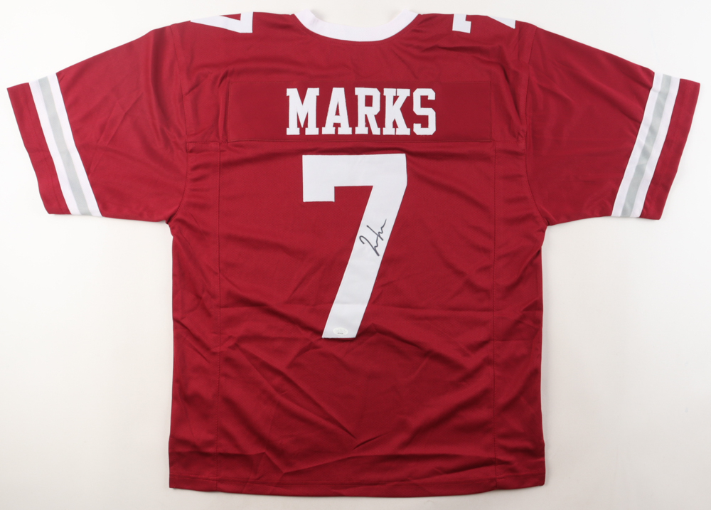 Custom jersey. Everything is sewn on, size XL. Hand-signed by Jo'quavious Marks.