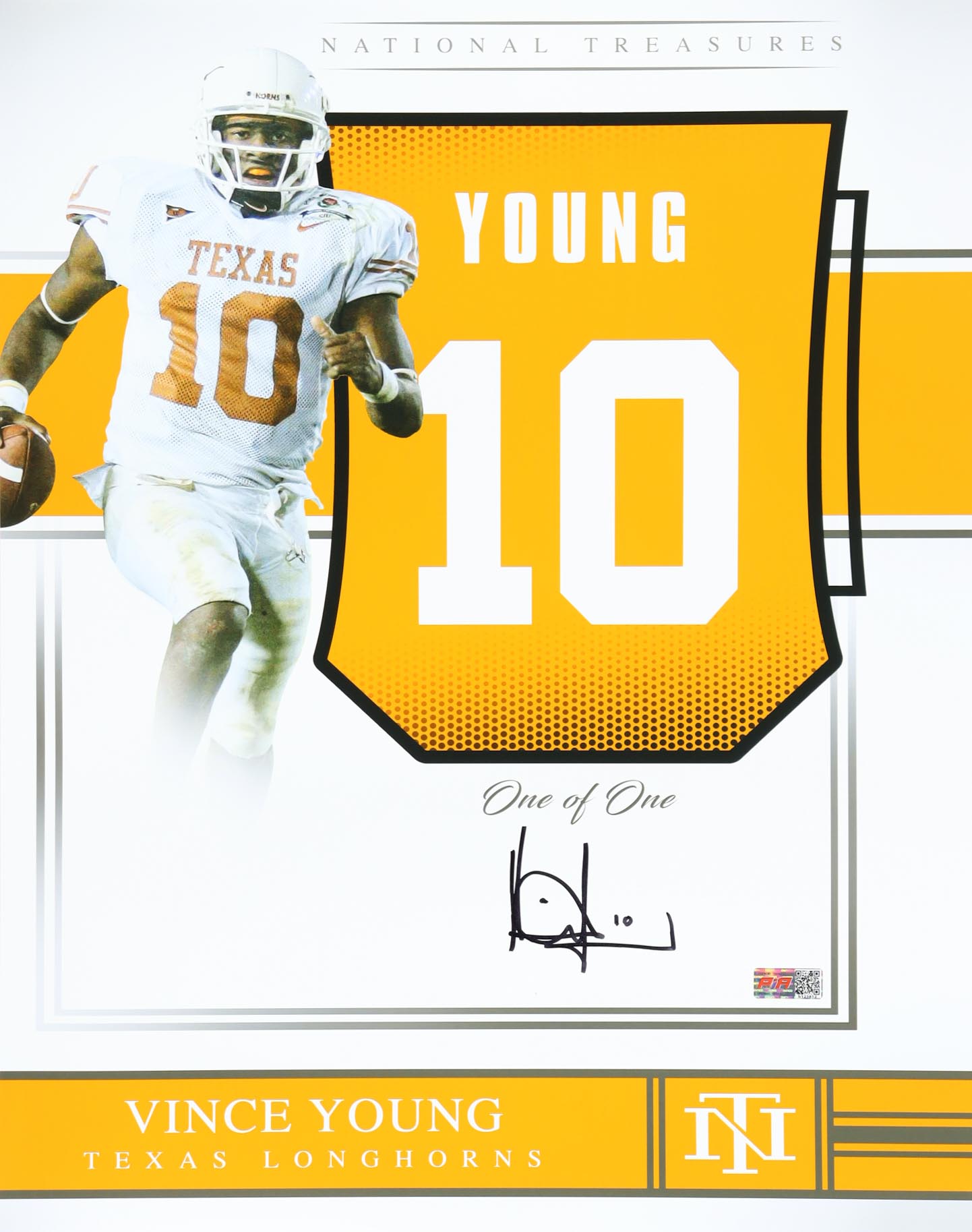 Photo measures 16" x 20" in size and has been hand-signed by Vince Young.