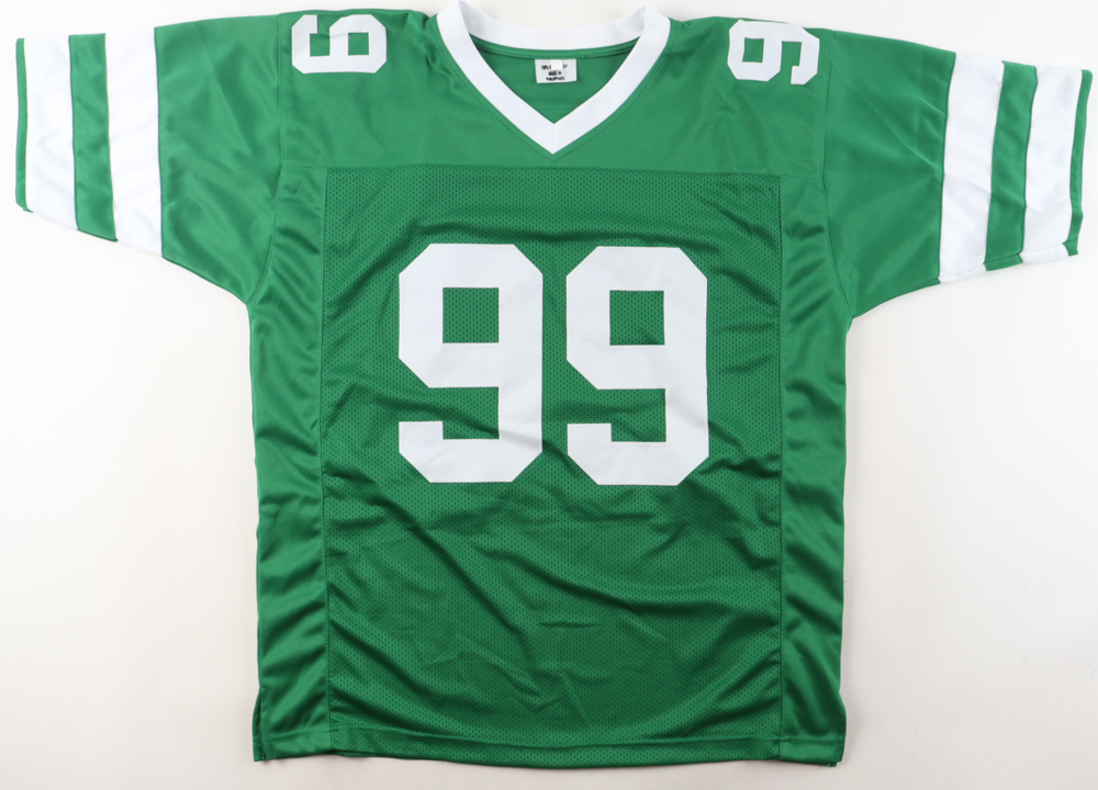 Custom jersey with everything sewn on, size XL. Hand-signed by Mark Gastineau.