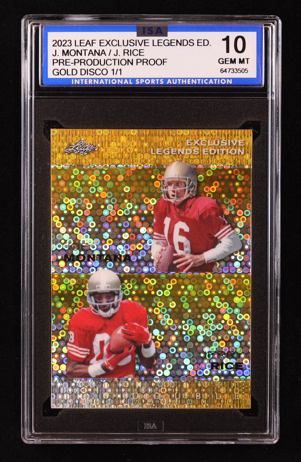 Joe Montana / Jerry Rice 2023 Leaf Exclusive Legends Edition Disco Gold Pre-Production Proof #NNO #1/1 (ISA 10)