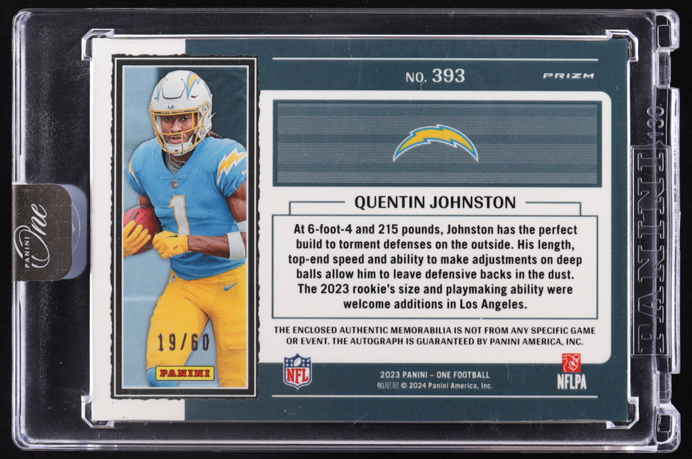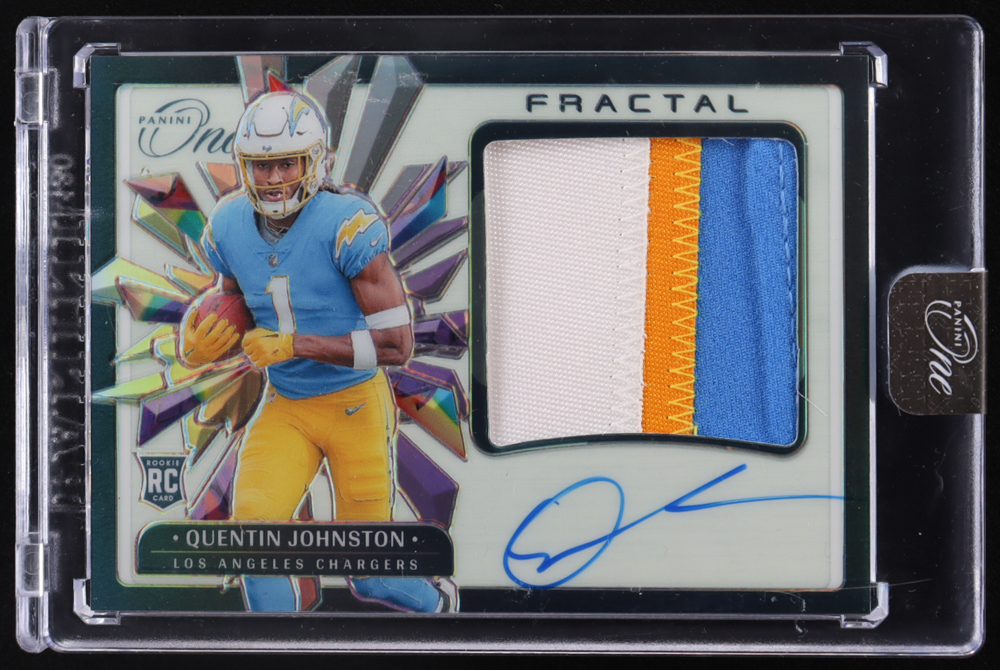 Quentin Johnston 2023 Panini One Rookie Fractal Patch Autographs #393 RC #19/60