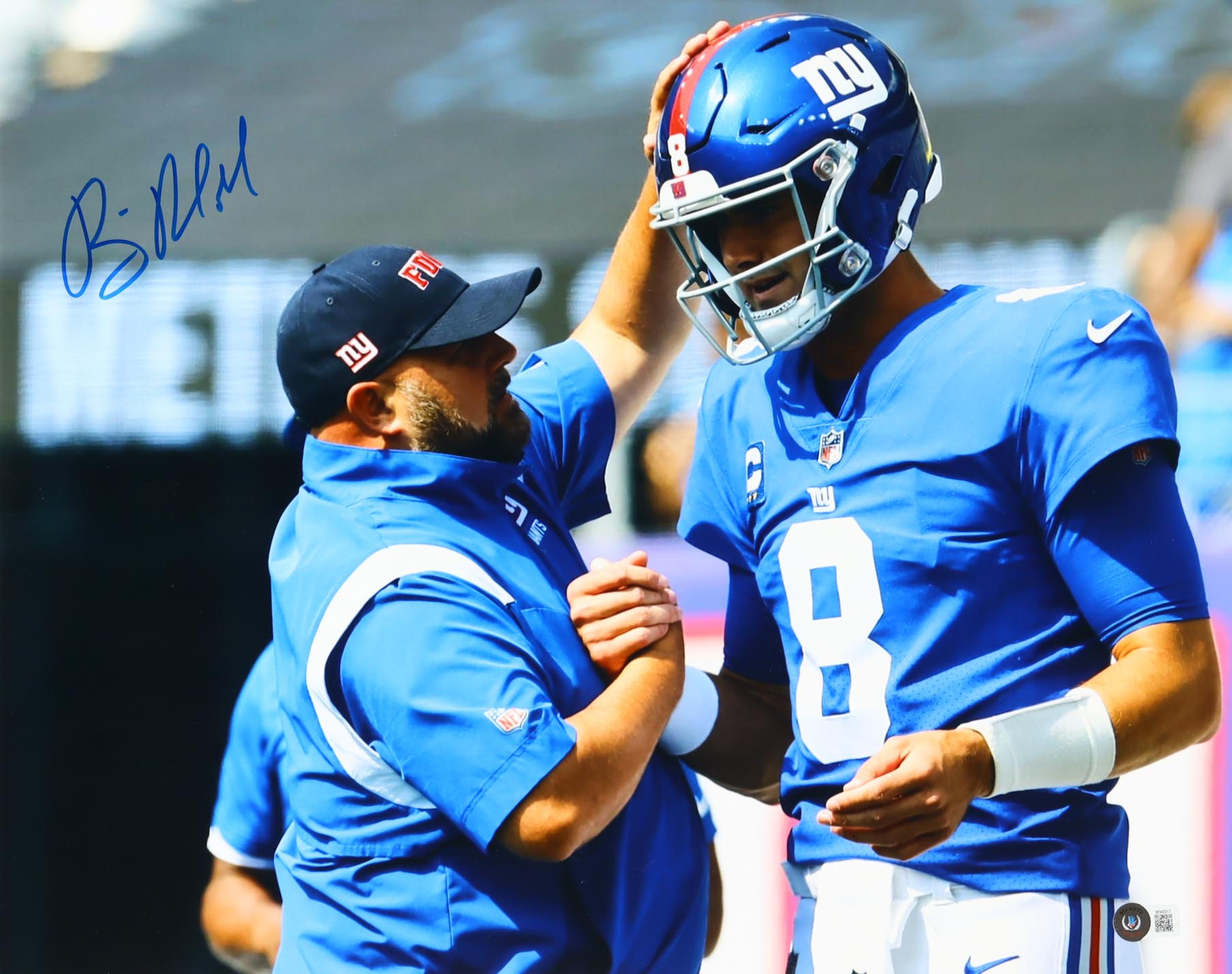 Photo measures 16" x 20" in size. Hand-signed by Brian Daboll (New York Giants).