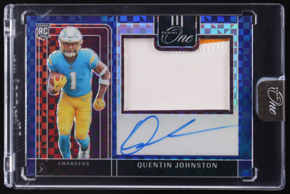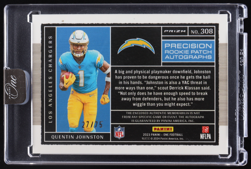 Quentin Johnston 2023 Panini One Precision Rookie Patch Autographs Blue #308 RC #27/75