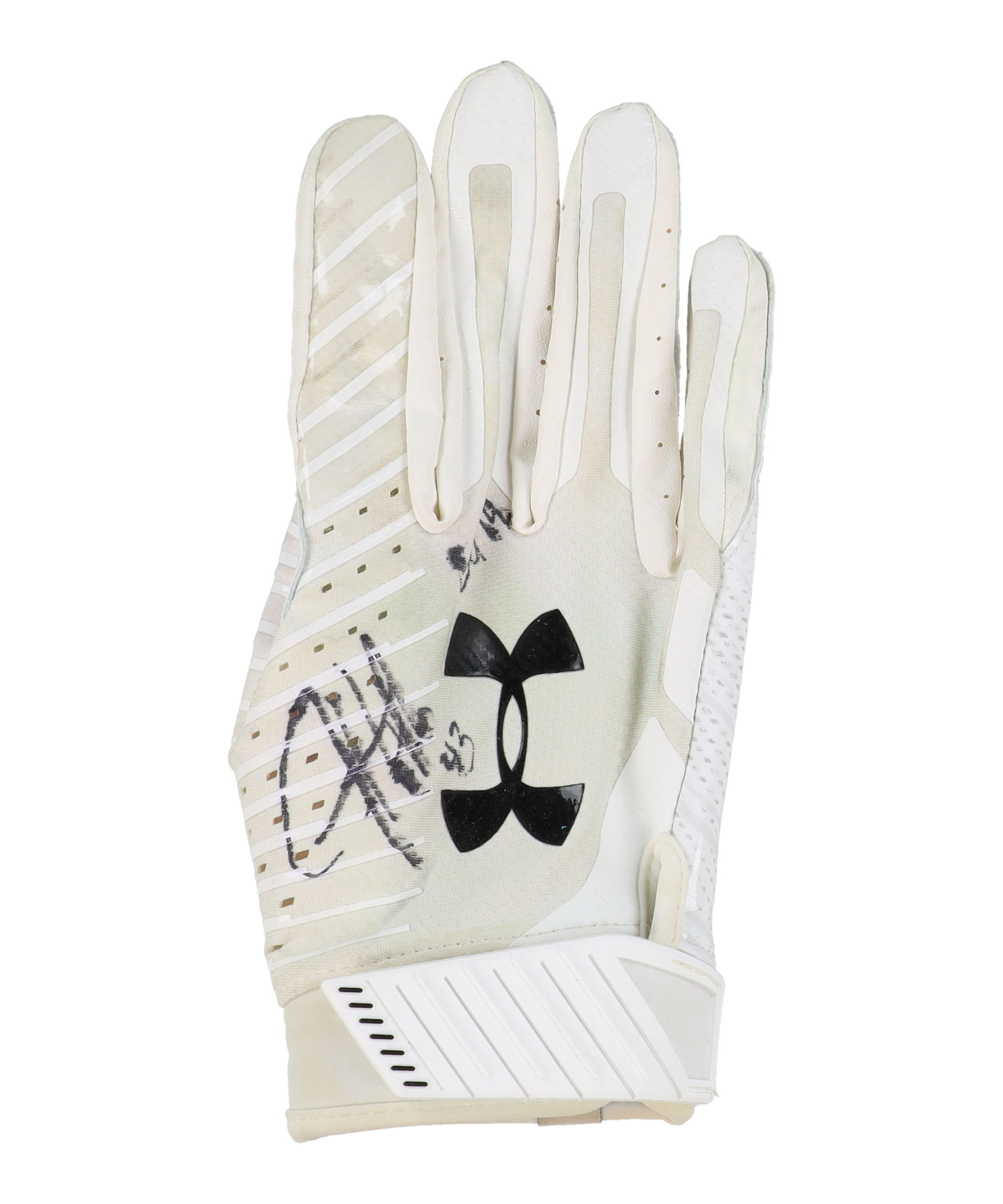 Justice Hill Signed Game-Used Under Armour Football Glove Inscribed "GU 19" (JSA)
