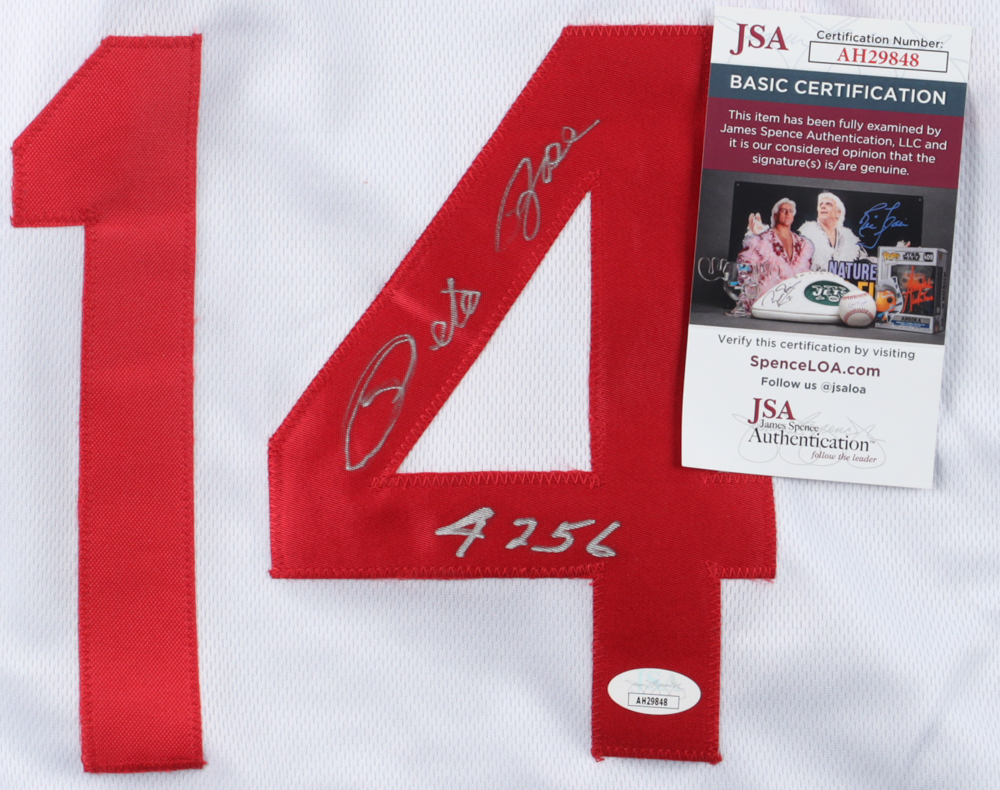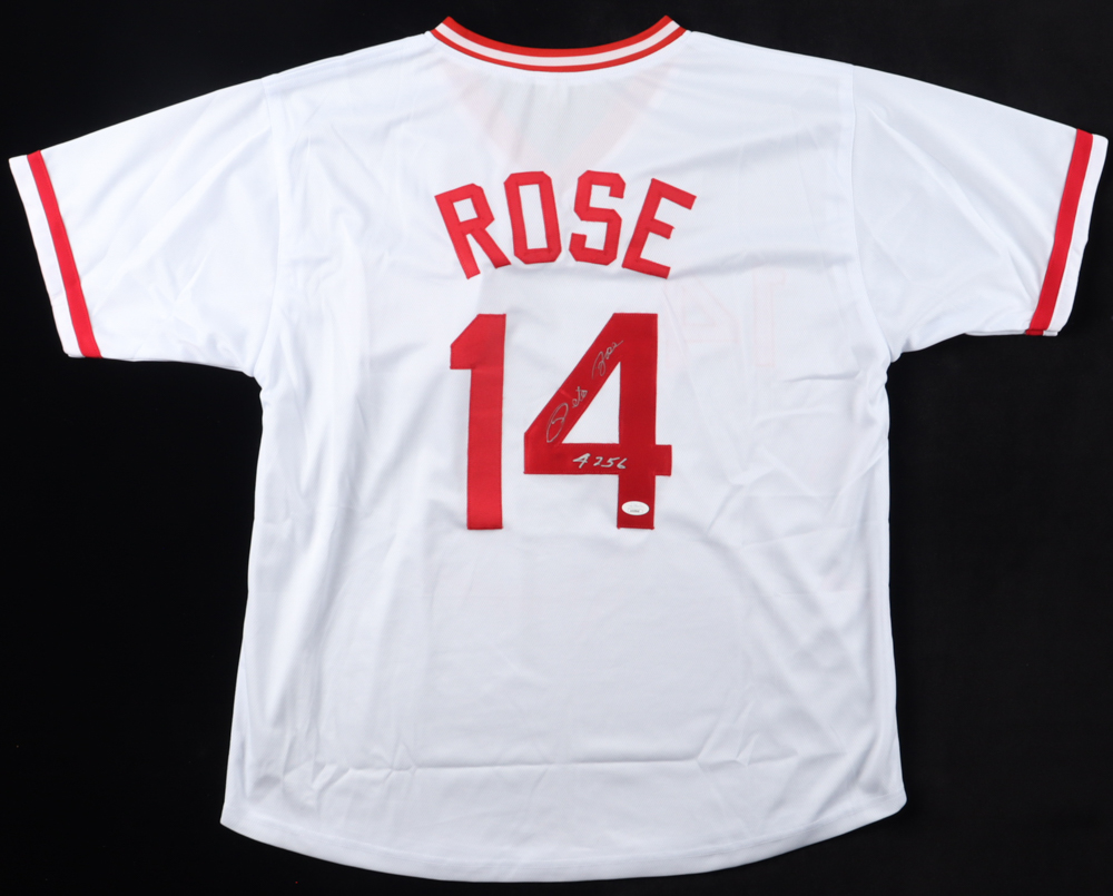 Pete Rose Signed Jersey Inscribed "4256" (JSA)