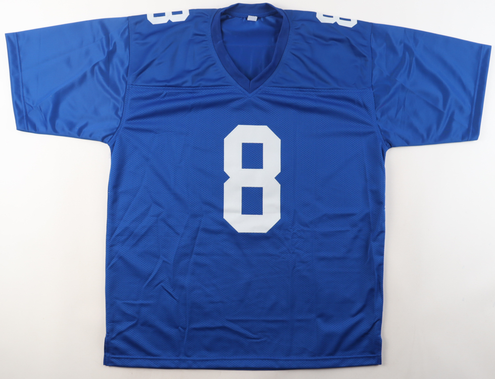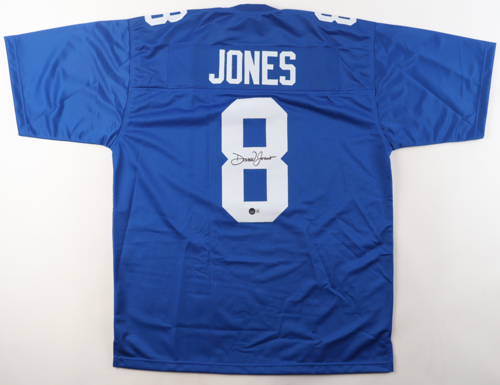 Custom jersey. Everything is sewn on, size XL. Hand-signed by Daniel Jones.