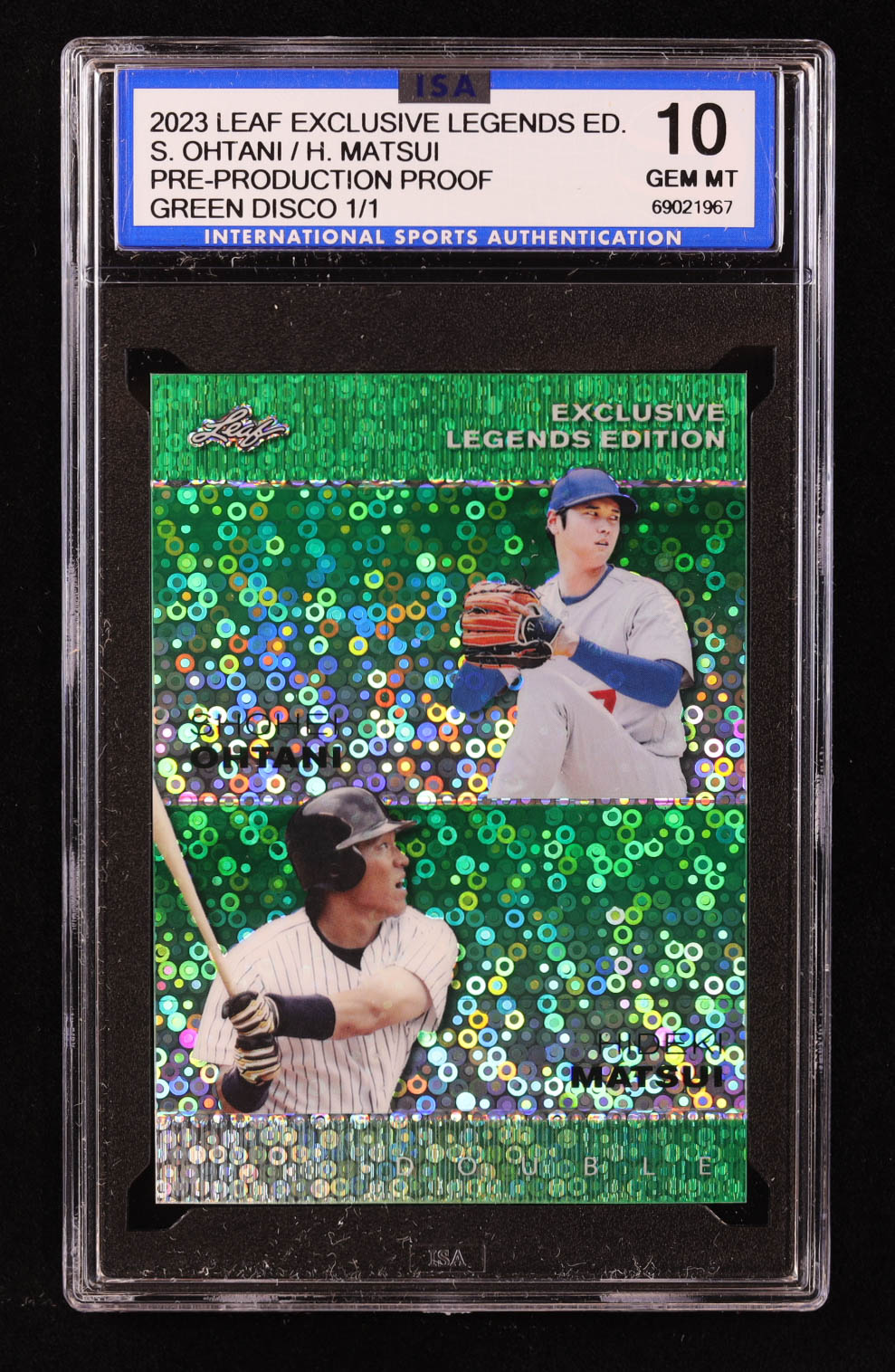 Shohei Ohtani / Hideki Matsui 2023 Leaf Exclusive Legends Edition Disco Green Pre-Production Proof #NNO #1/1 (ISA 10)