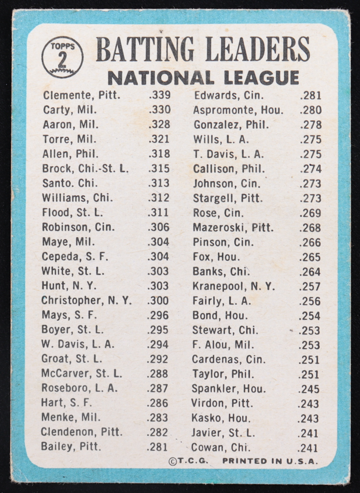 Roberto Clemente / Hank Aaron / Rico Carty 1965 Topps #2 / NL Batting Leaders