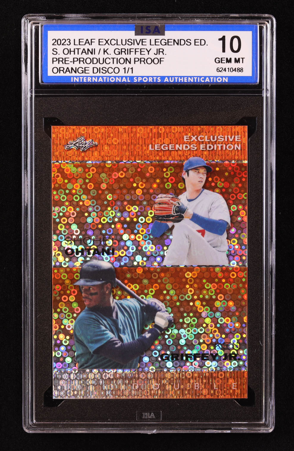 Shohei Ohtani / Ken Griffey Jr. 2023 Leaf Exclusive Legends Edition Disco Orange Pre-Production Proof #NNO #1/1 (ISA 10)