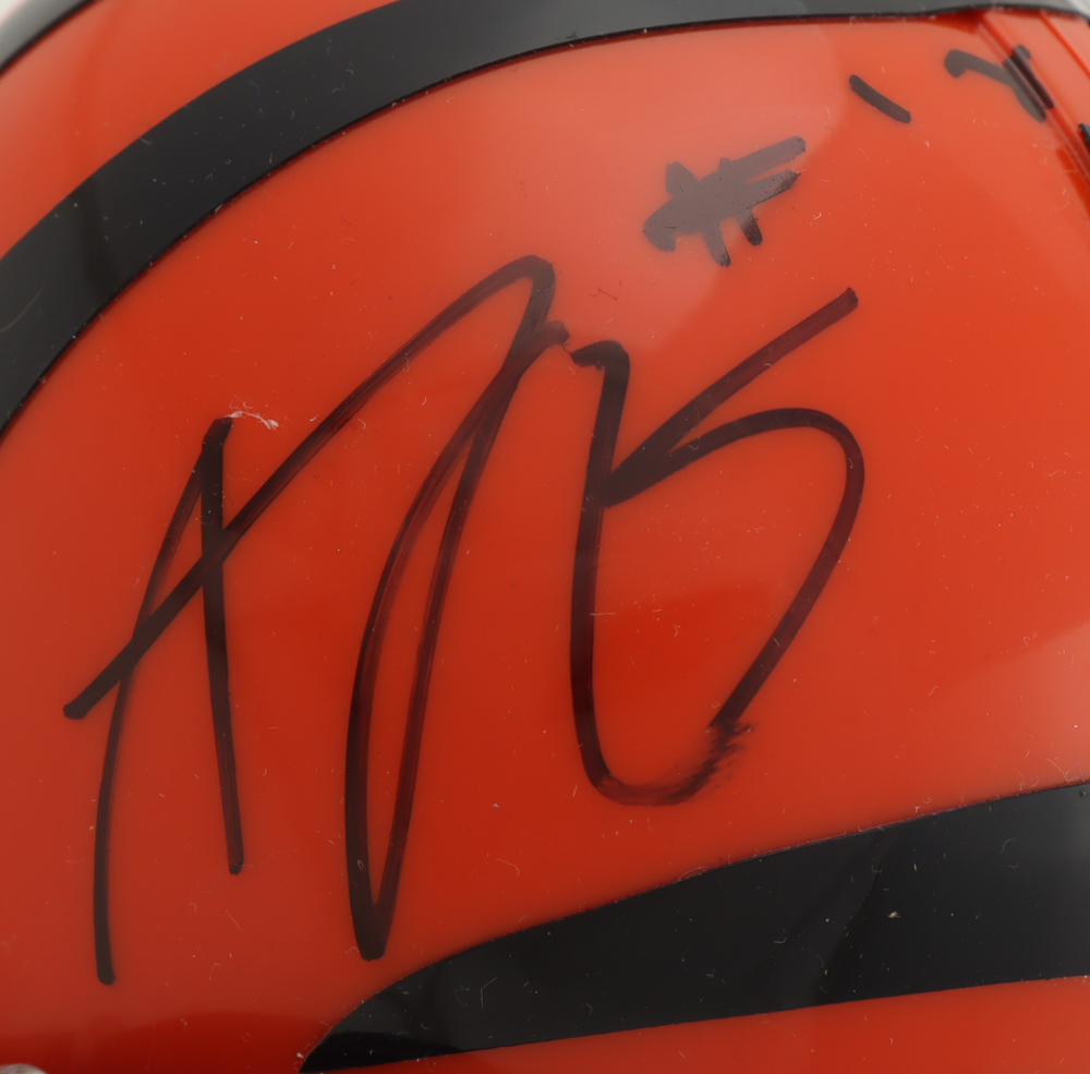 Riddell Cincinnati Bengals Speed mini helmet. Hand-signed by A. J. Green. Please note, there is some scuffing to the left of the autograph.